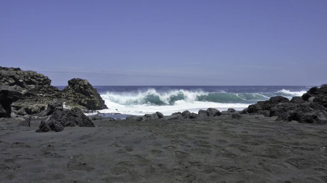 Die heutige Tour führt zu einem Strandabschnitt, vor dem die Lavamassen der Neuzeitausbrüche gerade noch rechtzeitig Halt machten. So konnten sich so genannte »Isolotes« - Inselchen - bilden. Das sind Landstücke, die nicht von dem Material der Neuzeitausbrüche bedeckt wurden. Der Strand liegt westlich von Tinajo im Norden von Lanzarote. Er wird sehr selten besucht. Der schwarze Lavasandstrand ist ca. 50 m lang und 25 m breit. ǀ Der Strand ist gut erreichbar. Zugang: Pkw Fahrt und kurze Wanderung ǀ In einem natürlichen Wasserbecken kann man sich abkühlen. Baden ist nicht möglich. ǀ Verschiedenes: sehr romantisch, sauberer Strand und sauberes Wasser, teilweise Schatten, nicht mit dem Buggy erreichbar, FKK möglich, Hunde nicht erlaubt, kein Rollstuhlzugang vorhanden ǀ keine: Toiletten, Duschen, Sonnenstühle, Sonnenschirme ǀ Aktivitäten: wave watching ǀ