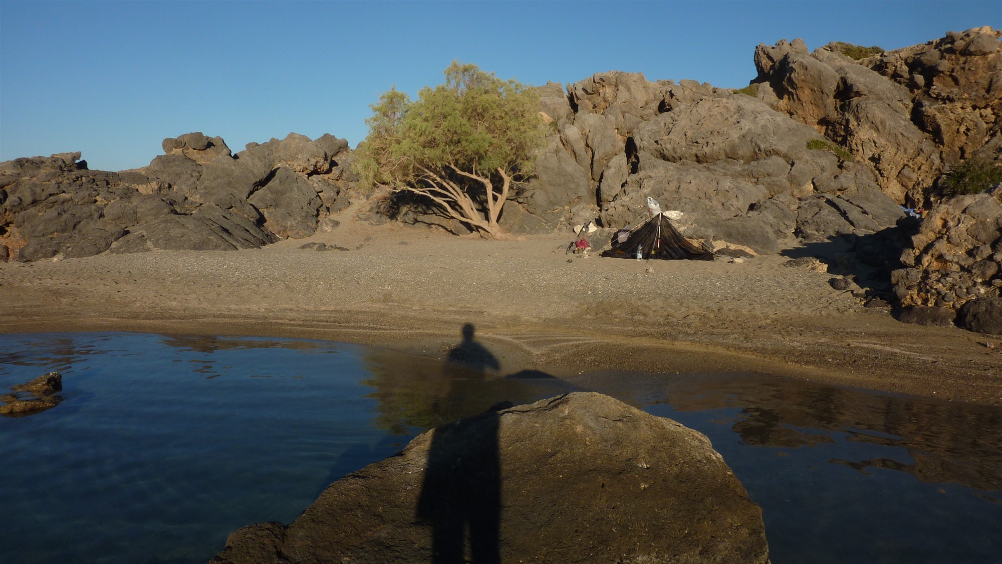 Da Kreta gut 250 km in seiner Länge misst und die Anfahrtswege auf Straßen und Schotterpisten kurvenreich sind, empfiehlt es sich für Tageswanderungen, immer nahe der gewählten Wanderung eine passende Unterkunft zu suchen. So reduziert man die Fahrzeit auf ein Minimum. Begibt man sich auf den E4 Fernwanderweg, so ist dies natürlich nicht möglich. Auch gibt es nicht an allen Etappenzielen Übernachtungsmöglichkeiten. So muss man unweigerlich biwakieren. Im Übernachtungsverzeichnis des Wanderführers sind diese Etappen hervorgehoben. Offiziell ist aber wildes Campen auf Kreta nicht erlaubt. Trotzdem sieht man an abgelegenen Flecken immer wieder wilde Camper. Die wenigen offiziellen Campingplätze liegen natürlich nicht am Fernwanderweg. Sollte man sich selbstverantwortlich zum wilden biwakieren entscheiden, so sind folgende Grundregeln wichtig. Verlasse Deinen Übernachtungsplatz, so wie Du ihn vorgefunden hast. Definitiv keinen Müll hinterlassen. Steine zur Befestigung des Zeltes wieder an ihre alte Stelle zurücklegen. Die Stelle so zurücklassen, dasss keine Übernachtungsspuren zu erkennen sind. Der Camper ist zu Gast in der Natur, so vermeide Lärm. Offenes Feuer auf Kreta ist aufgrund der extrem hohen Waldbrandgefahr strengstens verboten. Die einfachste Variante für die Notdurft ist, den Hintern ohne Klopapier zu säubern, die Kombination aus Wasser und Waschlappen oder Stofflappen. Die Verwendung von Tempotaschentüchern geht überhaupt nicht! Diese lösen sich in der Natur so gut wie gar nicht auf! Recycling-Toilettenpapier ist eine Wahl. Mein Tipp: Beim Projekt „Goldeimer“ gibt es ein dreilagiges und 100 % Recycling-Toilettenpapier mit dem Label: „Blauer Engel“. Poste nicht Deinen Campingstandort auf den sozialen Medien, genieße einfach den Moment. Vor der Abreise sollte noch einmal im Internet geprüft werden, ob sich etwas an dieser lockeren Handhabung des Verbots etwas geändert hat. Befolgt man die Hinweise, so kann man mit reinen Gewissen mit dem Zelt losziehen. Nachfolgend ein paar Impressionen ohne Ortsangabe.