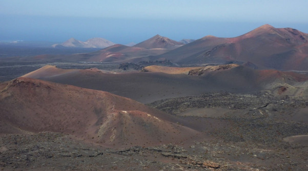 (Vulkanischer Ursprung: Parque Nacional de Timanfaya vom Montaña de Señalo 507 m aufgenommen. Foto: Michael Will)