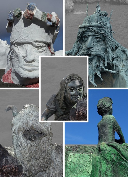 Bei der Streusiedlung Pozo de Las Calcosas, ganz im Norden von El Hierro, nahe des Ortes El Mocanal, muss der Pkw geparkt werden, um zu diesem Kunstwerk zu gelangen. Von nun an geht es nur noch zu Fuß weiter, auf einem breiten Pfad steil bergab durch die Klippen. Unterhalb sieht man die von der Natur gegossenen Meeresschwimmbecken Pozo de Las Calcosas. Es ist die bizarre Formation eines erstarrten Lavastroms und ein kleines Kunstwerk der Natur mit einem einmaligen Anblick. Am Ende einer steilen Treppe befindet sich ein weiteres Kunstwerk, nicht von der Natur, sondern von dem ortsansässigen Künstler Rubén Armiche. Es entstand aus der Not, denn die Einwohner wussten nicht wohin mit ihrem Müll. So entstand die Idee, daraus ein Kunstwerk zu erschaffen. Etwa einen Monat lang schleppten Anwohner Elektrogeräte, Eisen und Zement an und nach vier Wochen war ein neu gestalteter Meeresgott Neptun fertig. Zwischen den kleinen, aus Vulkangestein gebauten Häusern und Hütten führt ein Weg bis zu den Schwimmbecken. Ein Bad im Meer ist hier aber nur bei ruhiger See zu empfehlen! Die Woche über sind die Häuser verwaist, es verirren sich nur einzelne Besucher und ein paar Fischer an diesen Ort. | GPS-Koordinaten 27.839650 -17.946765 | siehe Wanderung 46* |