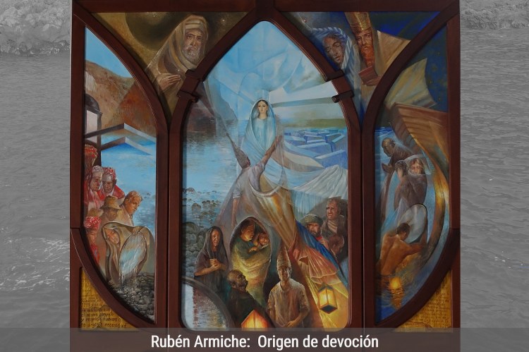 Im Herbst 2013 feierte die Gemeinde von El Hierro in der Iglesia de La Concepcion das feierlich abgelegte Gelübde Bajada de la Virgen. An dessen Ende wurde das Triptychon „Ursprung der Hingabe“ des Künstlers Rubén Armiche Benítez Padrón eingeweiht. Es besteht aus einem mittleren Bild in Öl auf Leinwand und zwei beweglichen bildlichen Darstellungen in einem Holzrahmen, eine Hommage an die Virgen de Los Reyes und die Menschen auf El Hierro. Im mittleren Teil des Triptychons wird die Jungfrau als Bindeglied zwischen Vergangenheit und Gegenwart dargestellt. Gleich einem Leuchtturm setzt sie ein Licht frei, das die aufgrund eines schrecklichen Sturms gestrandeten Seeleute aus Genua an die Küste von El Hierro brachte – wie Überlieferungen zu entnehmen ist. Das Erscheinungsbild der Jungfrau ist demütig und einfach. Der untere Bildausschnitt zeigt eine brüderliche Umarmung zwischen Seefahrern (die aus Genua) und Hirten (Herreño aus El Hierro). Dabei steht die Demut der Herreño in einem Gegensatz zum Hochmut der angekommenen Seefahrer. Die Seefahrer schenken den Hirten und ihren Familien die Jungfrau, als Dank ihrer Rettung vor dem Sturm. Das Licht – Symbol des Wissens – ist in diesem Teil des Gemäldes schwach ausgeprägt; dies symbolisiert die Kultur der Inselbewohner, die zwar ohne Studium oder Ausbildung waren, aber die Kunst der Landwirtschaft auf dem oft dürren Land beherrschten. Auch werden im zentralen Teil eine Mutter mit Kind – die Zukunft der Insel –, eine alte Frau – Wissen und Tradition – und die Hirten als „Wächter“ des Bildes gezeigt.