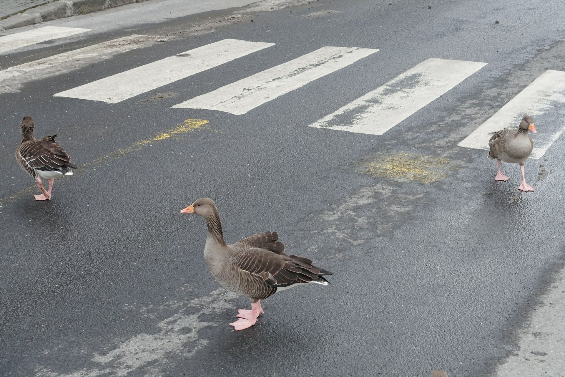 Island – Graugänse demonstieren in der Innenstadt von Reyjavik – Zu viele zugefrorene Seen.