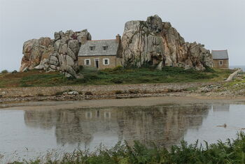Das Haus zwischen Felsen und die Halbinsel von Plougrescant