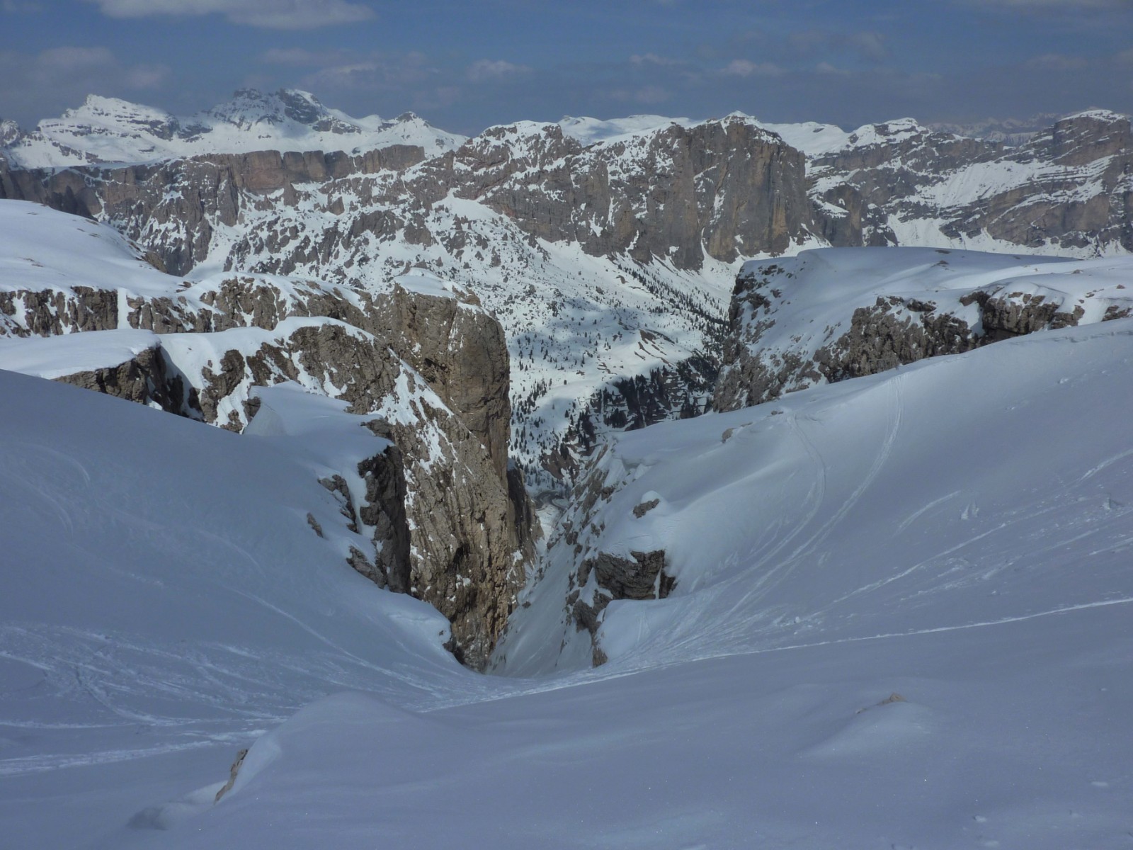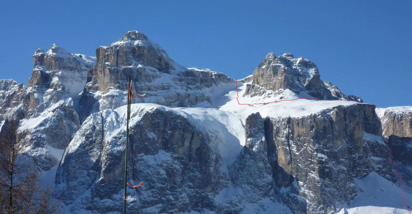 Wenn noch keine Spur vorhanden ist, ist die Orientierung nicht einfach, aber mithilfe des GPS-Tracks gut machbar. Die Abfahrt führt über einen Nordhang. Folgende Ausrüstung wird empfohlen: Produkte für alpine Sicherheit im Schnee, Tourenski und Skitourenhelm. Es empfiehlt sich die Einkehr in das Rifugio Maria bei der Bergstation, welches nach Maria Piaz, der Pionierin des Tourismus am Pordoipass, benannt wurde. Beste Jahreszeit: Januar bis April. Uns erwarten kurze Stücke mit bis zu 50° Hangneigung.