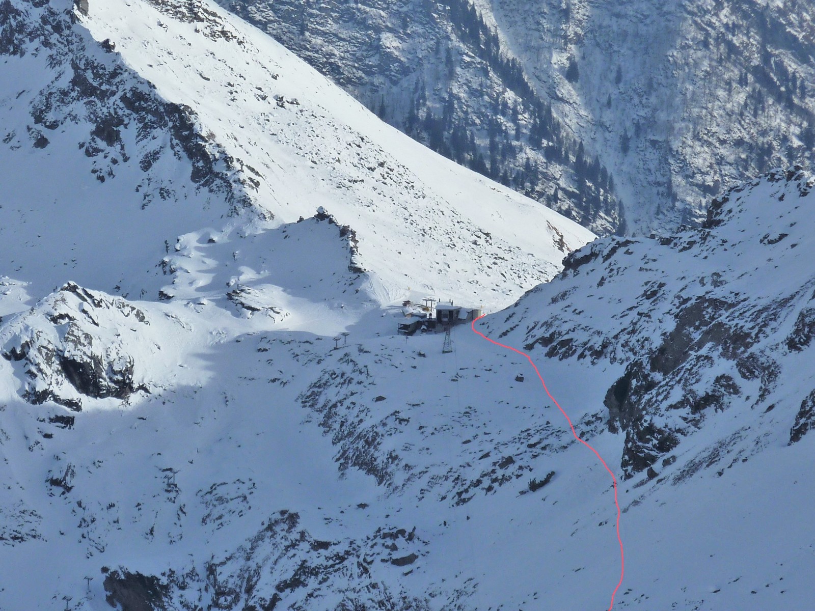 Mit ein bisschen Geschiebe kommen wir zur Bergstation des Sessellifts Nr. 32 Pianalungs Bocchetta und so wieder ins Skigebiet zurück.