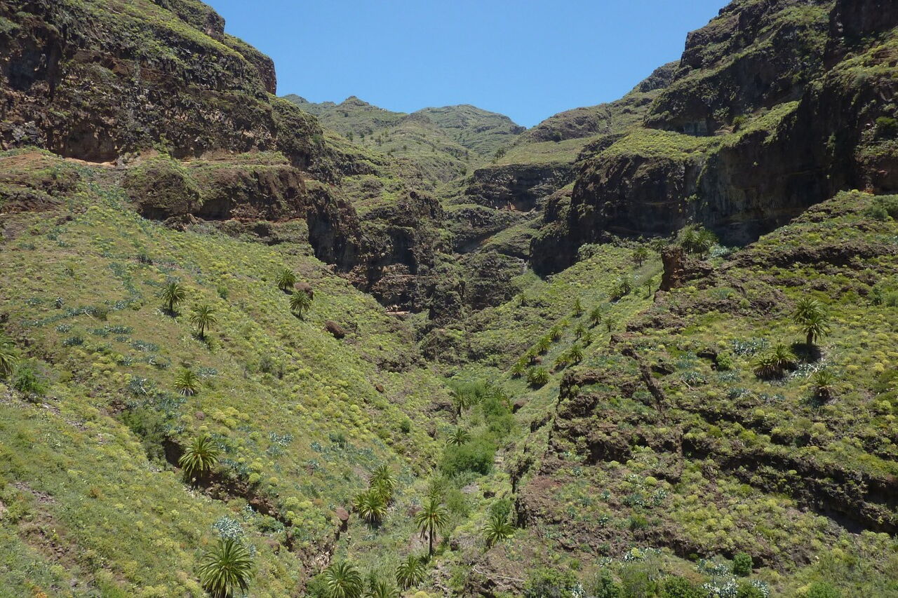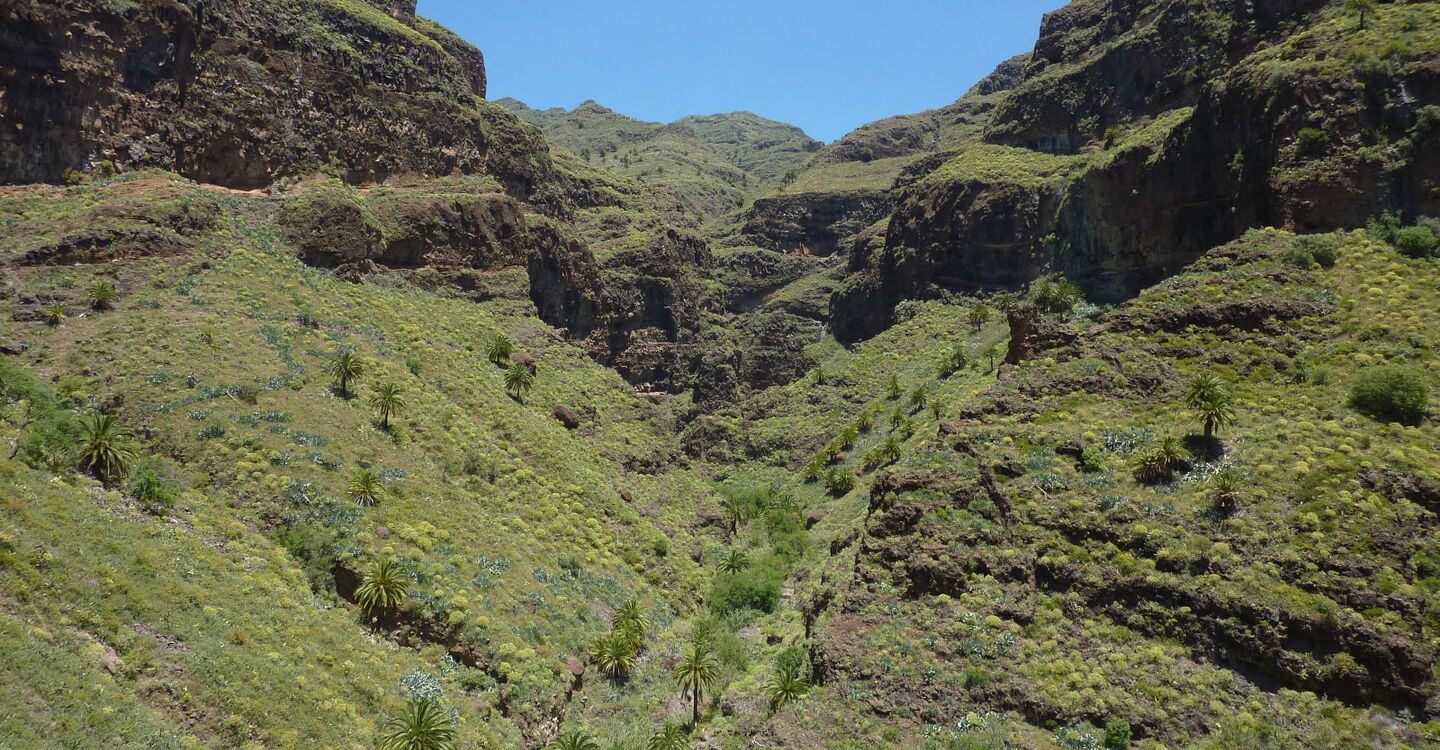 Das Barranco de Guarimiar ist ein wunderschönes, einsam gelegenes Tal im sonnigen Süden der Insel und zählt zu den beeindruckendsten Schluchtausläufen auf La Gomera. Die artenreiche Vegetation sowie vielfarbige Erosionsschichten machen diesen herrlichen Panoramaweg mit einem imposanten Steilabstieg längs eines 150 Meter hohen Wasserfalls zu einem außergewöhnlichen Erlebnis. Vier Kilometer lang schlängelt sich das Barranco de Guarimiar von Imada, bis es sich mit dem Barranco de Santiago vereinigt. Dabei werden 650 m Höhenunterschied bewältigt. Wir begleiten das Barranco auf einer Länge von 3 km, bevor wir auf einem architektonisch genial angelegten Camino den Aufstieg Richtung Targa und zurück zum Ausgangspunkt in Angriff nehmen.