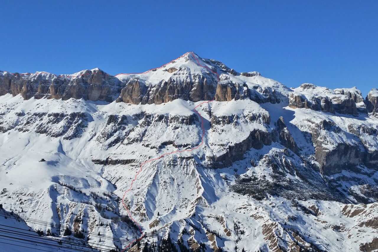Einfache Orientierung, da der zu besteigende Piz Boè immer vor uns liegt. Bei der Abfahrt sind die Wegpunkte 4 und 5 zu beachten. Die Abfahrt führt über einen Südhang. Folgende Ausrüstung wird empfohlen: Produkte für alpine Sicherheit im Schnee, Tourenski, ggf. Steigeisen zum Aufstieg zum Piz Boè und Skitourenhelm. Es empfiehlt sich die Einkehr in das Rifugio Maria bei der Bergstation, welches nach Maria Piaz, der Pionierin des Tourismus am Pordoipass, benannt wurde. Beste Jahreszeit: Januar bis April. Uns erwarten kurze Stücke mit bis zu 45° Hangneigung.