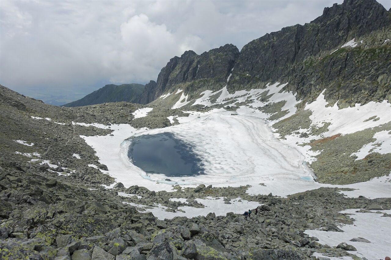 Als sich die Gletscher über das Hochtal wälzten, schliffen sie kantige Felsen und Berge rund, wie wir es auf dem nachfolgenden Aufstieg sehen. Ein Bachbett wird gequert und der Pfad führt an kleinen Seen vorbei. Die nachfolgende Gedenktafel ist den verunglückten Rettungskräften gewidmet, die hier im Juni 1979 mit einem Mi-8-Hubschrauber abstürzten, während sie versuchten, einen deutschen Touristen zu bergen. Die Überreste des Hubschraubers sind nicht weit vom Denkmal entfernt zu sehen. Durch eine steinerne Wüste und hinter einer Felsschwelle erreichen wir den Talschluss mit dem wunderschön gelegenen 02 Capie pleso (2075 m).