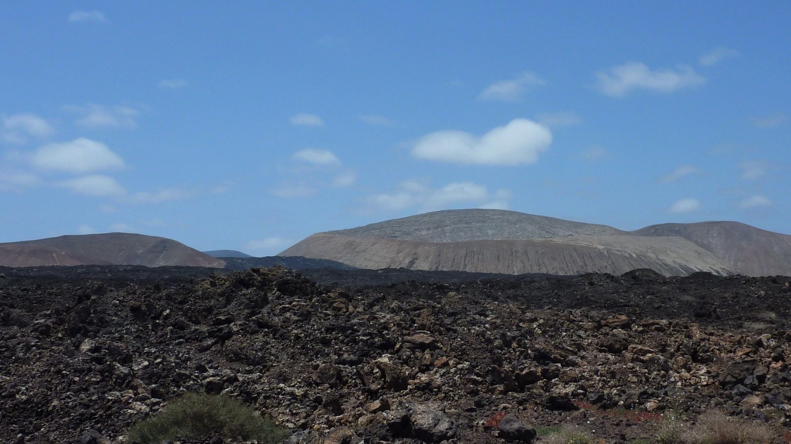 Wieder auf dem hellbraunen Vulkangestein angekommen, gehen wir links am Fuße der (05) Montaña Caldereta (217 m) entlang, bis ein Durchbruch im Vulkan den Blick ins Innere freigibt. Nach einer Explosion des Vulkans hat sich an dieser Stelle seine Magmakammer entleert. Von hier aus gehen wir 90 m in nördlicher Richtung, bis wir auf die Schotterstraße treffen. Links führt der Wegrichtung Mancha Blanca. Wir gehen links, queren noch einmal den Lavastrom und wandern entlang der Caldera Blanca, bis wir den Ausgangspunkt erreichen.