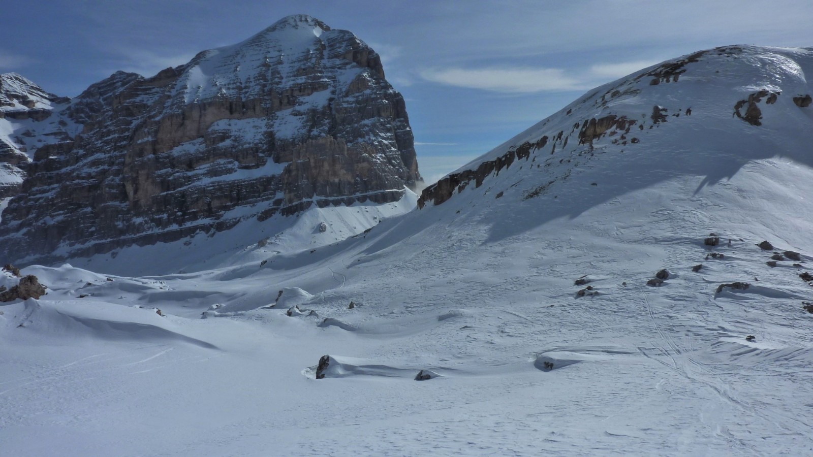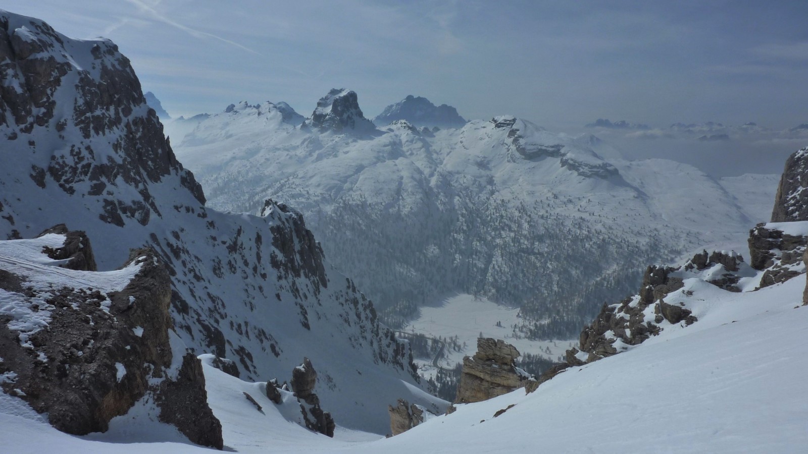 Der 1956 durch die Olympischen Winterspiele bekannt gewordene Ort Cortina d'Ampezzo liegt in traumhafter Landschaft, umgeben von den Gipfeln der Tofana di Mezzo 3243 m, Monte Cristallo 3218 m und Punta Sorapis 3205 m. Bisher gehört die Dolomitengemeinde zur venetischen Provinz Belluno und nicht zu Südtirol, trotzdem wird auch hier Ladinsch gesprochen. Ohne Frage in Cortina d'Ampezzo trifft man Gäste aus der ganzen Welt und besonders auf der Flaniermeile im Dorfkern. Die drei Skigebiete Faloria Cristallo Mietres, Tofan Ra Valles und Lagazuoi 4 Torri, mit 38 Bergbahnen und 120 Pistenkilometer, sind absolute Spitzenklasse. Wir sind aber gekommen um die Variantenabfahrten in dieser Region zu erkunden.