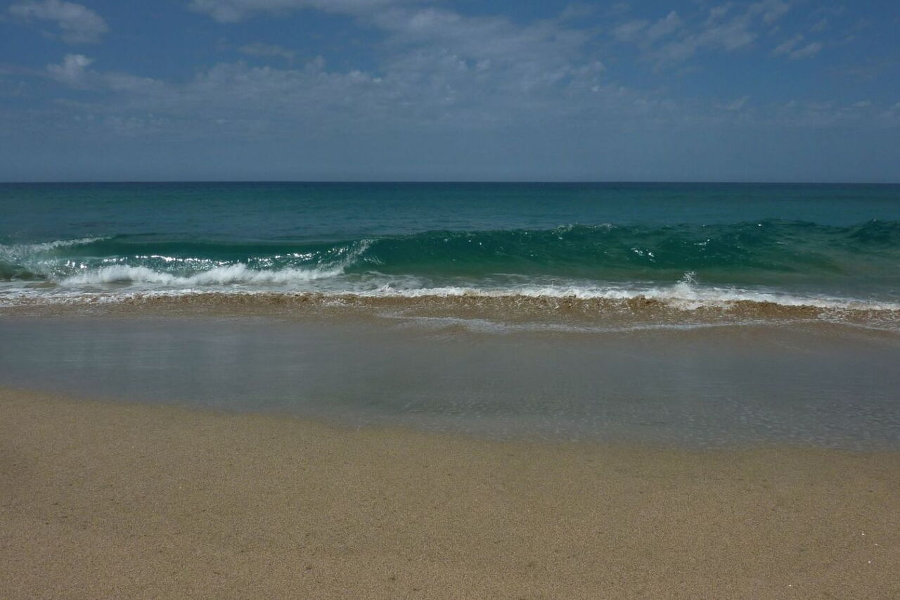 Eine extrem beeindruckende Wanderung durch das Naturschutzgebiet Jandia, die stark an die Durchquerung einer Wüste erinnert. Dabei läuft man auf dem Hinweg immer entlang der schmalsten Stelle von Fuerteventura, die hier nur einen Durchmesser von 4,5 km hat. Steigt man zwischen den Klippen zur Westküste herunter, so lässt sich miterleben, wie die gewaltigen, meterhohen Wellen mit tosendem Lärm an die Küste prallen – ein Erlebnis, das wir niemals vergessen werden. Auch die vom starken Passatwind geformten Sandsteinobjekte bieten unzählige Fotomotive. Ein besonders kraftvoller Ort – die Westküste von Fuerteventura.