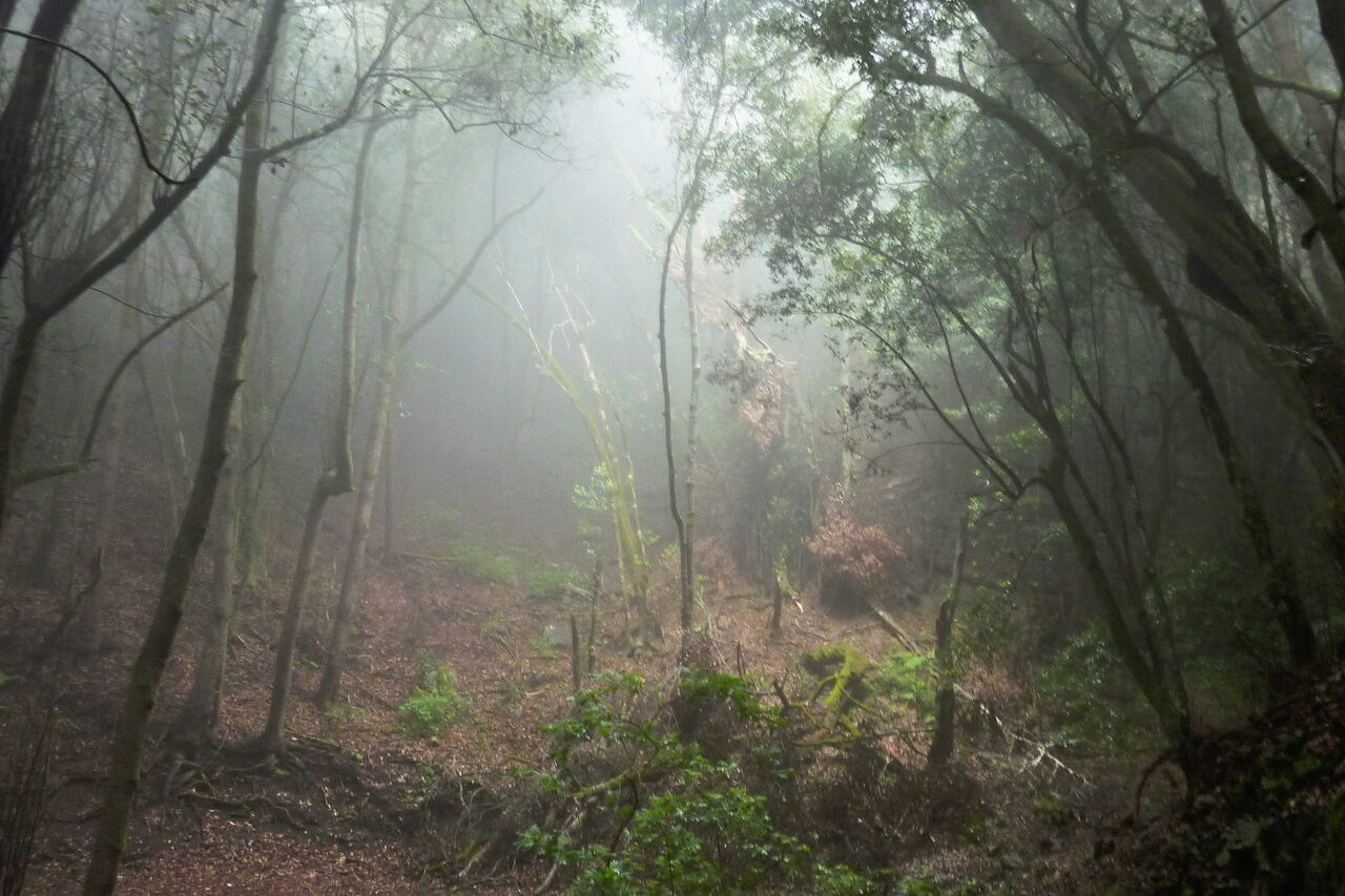 Vom Weiler (01) El Cedro (778 m) und dem Picknickplatz gehen wir in nördlicher Richtung auf der Anfahrtsstraße, bis wir in einer Rechtskurve der Straße nach links abbiegen, um sofort wieder nach rechts auf den Wanderweg Richtung Hermigua einzuschwenken. An einer Asphaltstraße angekommen, setzen wir unsere Wanderung auf dem Pfad halb links - auf roter Erde - fort. Bei der folgenden Weggabelung verlassen wir den Hauptweg nach rechts, um nun durch den immer tiefer werdenden Nebelwald an Höhe zu gewinnen. Je nach Wetterbedingungen drücken an dieser Stelle die Nebelschwaden bis auf den Waldboden und hinterlassen so ihre Feuchtigkeit.