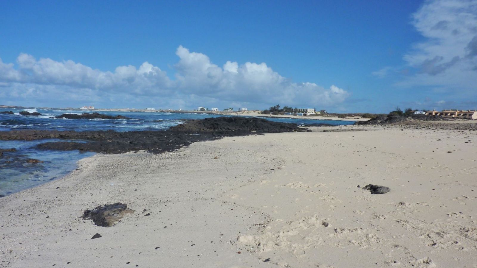 Vom (01) Start El Cotillo (27 m) gehen wir auf der Hauptstraße in westliche Richtung bis in das Ortszentrum und dort direkt auf einem der vielen Pfade entlang der Küste – nun in nördliche Richtung. Vorbei führt der Weg an einer Reihe wunderschöner Sandstrände (Playa Marfolín, Playa Islote und Playa Beatriz) mit weißem Sand. Bei Ebbe ergeben sich hier perfekte Badebuchten. Entgegen der Meinung, der weiße Sand stamme aus der Sahara, besteht der Sand der Strände aus Körnern organischen Ursprungs, wie von Muschelresten oder Restmaterialien kalkhaltiger Algen. Im Zusammenspiel mit dem Wind bildeten sich kleine Dünenfelder, wie wir sie entlang der Küste bei El Cotillo bewundern können. Die Wanderung führt direkt am Strand entlang. Es wechseln immer wieder sandige Buchten mit felsigen Abschnitten.