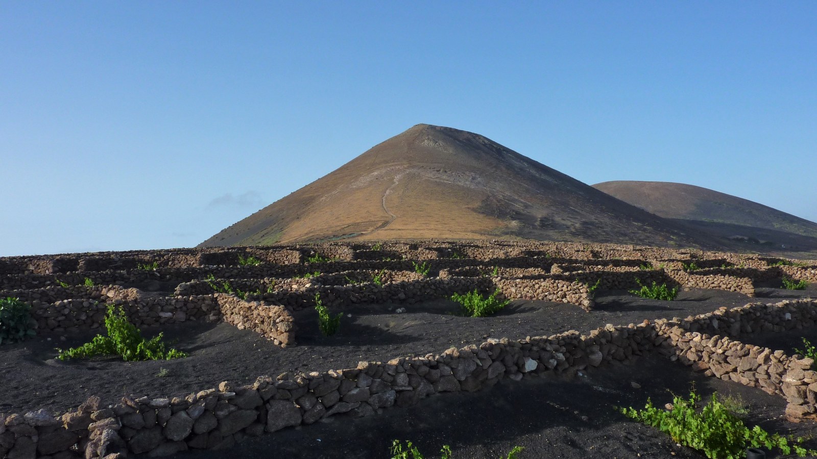 Bei dem Aufstieg zum ersten Vulkan ist der Weg nicht einfach auszumachen und kurzfristig wird der Orientierungssinn gefordert. Wegbeschaffenheit: 30 % Asphaltstraße, 30 % Schotterweg und 40 % Pfade. Einkehr: Auf dem letzten Wegstück liegt die Bodega El Chupadero, oberhalb von La Geria. Diese Wanderung kann zu jeder Reisezeit unternommen werden. Tipp: Das sehr interessant gestaltete Weinmuseum in der Bodega Rubicón in La Geria kann besucht werden.
