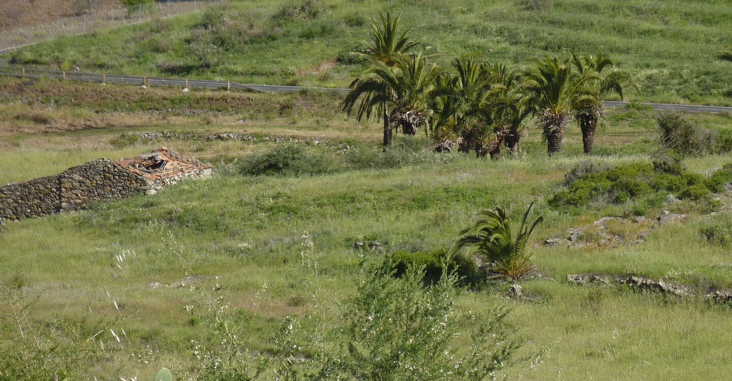 Vom (01) Start Ziel Lomo del Balo (425 m) gehen wir auf der Calle San Antonio rechts in Richtung des Restaurants Marcondo. Nach 100 m, hinter einer Brücke, beginnt links im Barranco der Camino Richtung Las Hayas. Wichtig: Im Barranco gleich der weißgrünen Markierung folgen und nicht das Barranco auf einem weiterführenden Pfad verlassen. Erst im weiteren Verlauf verlassen wir das Barranco und gehen nun durch die meterhohen Terrassenfelder. Der Weg wird zunehmend steiler, einige Stellen sind etwas ausgesetzt und wiederum andere Wegstücke sind von Erdrutschen verschüttet und schwer auszumachen.