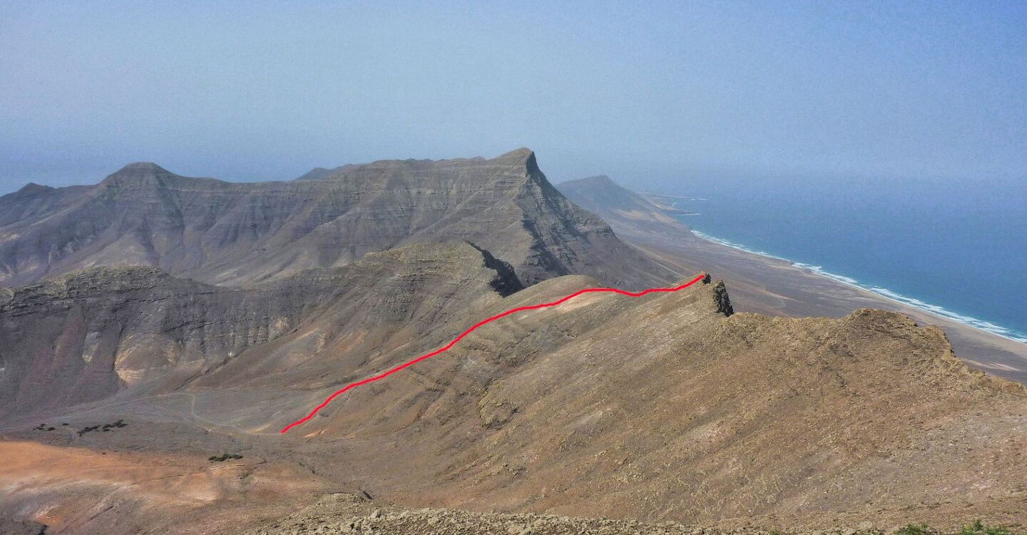 Hat man noch keine Wanderung im Jandia-Bergmassiv unternommen oder ist man mit dem Pkw über die Schotterpiste nach Cofete gefahren, so hatte man noch keine Gelegenheit, die wildromantische Westküste Fuerteventuras zu sehen. Diese Tour eröffnet einen ersten Einblick in diese besondere Naturlandschaft. Fuerteventuras Entstehungsgeschichte basiert auf drei Hauptvulkanen. Der heutige Wanderweg führt auf den ehemaligen Kraterrand eines viel größeren Vulkans, der nach einem Einsturz eine Seite an das Meer verloren hat. Dieses Ereignis lässt sich von dem Aussichtspunkt am Ende des Wanderwegs sehr gut nachvollziehen.
