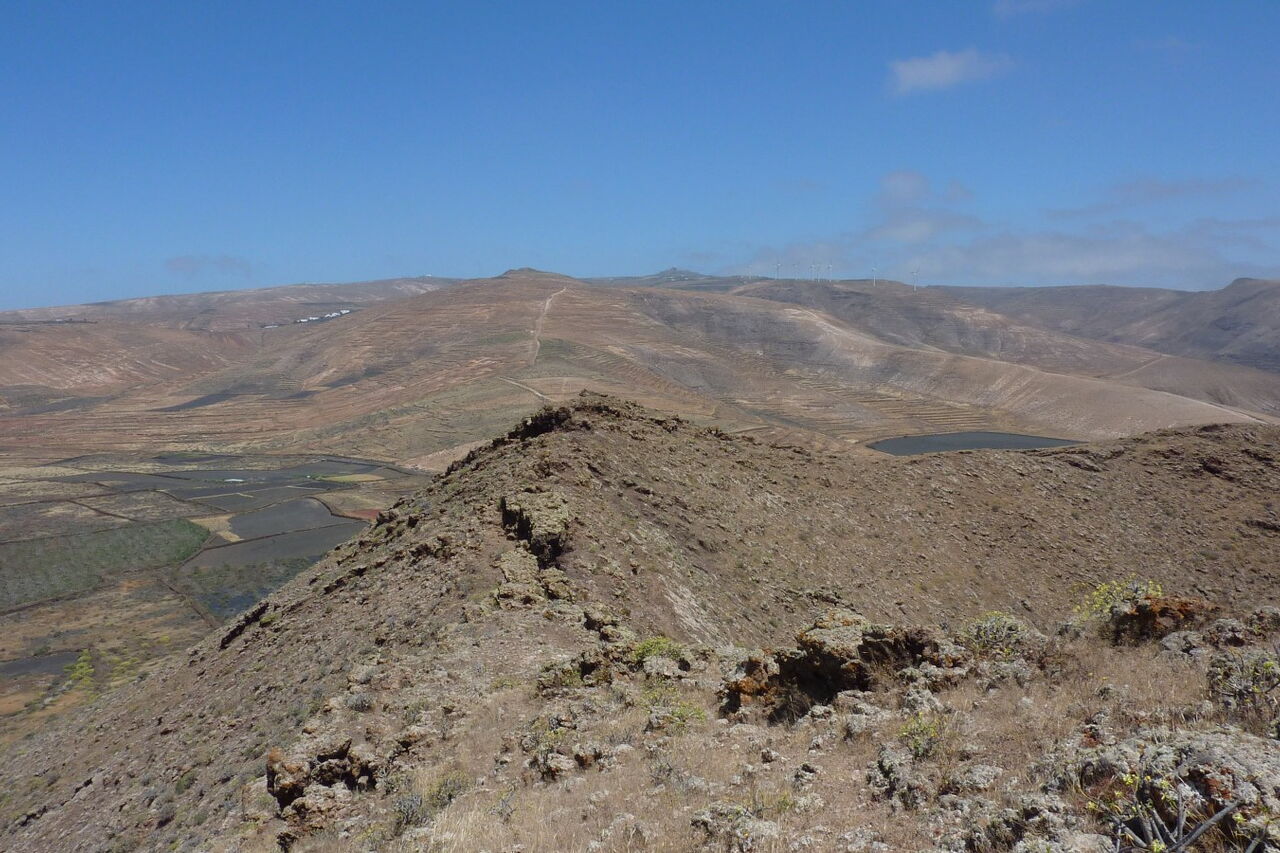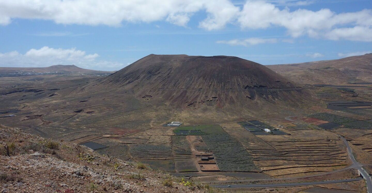 Der Ausgangspunkt der Wanderung ist das Dorf Guatiza im Nordosten von Lanzarote. Südlich von Guatiza liegen die beiden Hausvulkane Montaña Tinamala mit 330 m und Montaña de Guenia (358 m). Der höhere der beiden ist unser heutiges Ziel. Wenn man möchte und mit dem Pkw angereist ist, kann man die gesamte Wegstrecke noch um 5 km reduzieren, indem man bis zum Wegpunkt (02) fährt. Damit reduzieren sich die Höhenmeter auf 160. Trotz seiner geringen absoluten Höhe genießt man vom Gipfel aus eine wunderschöne Rundsicht.