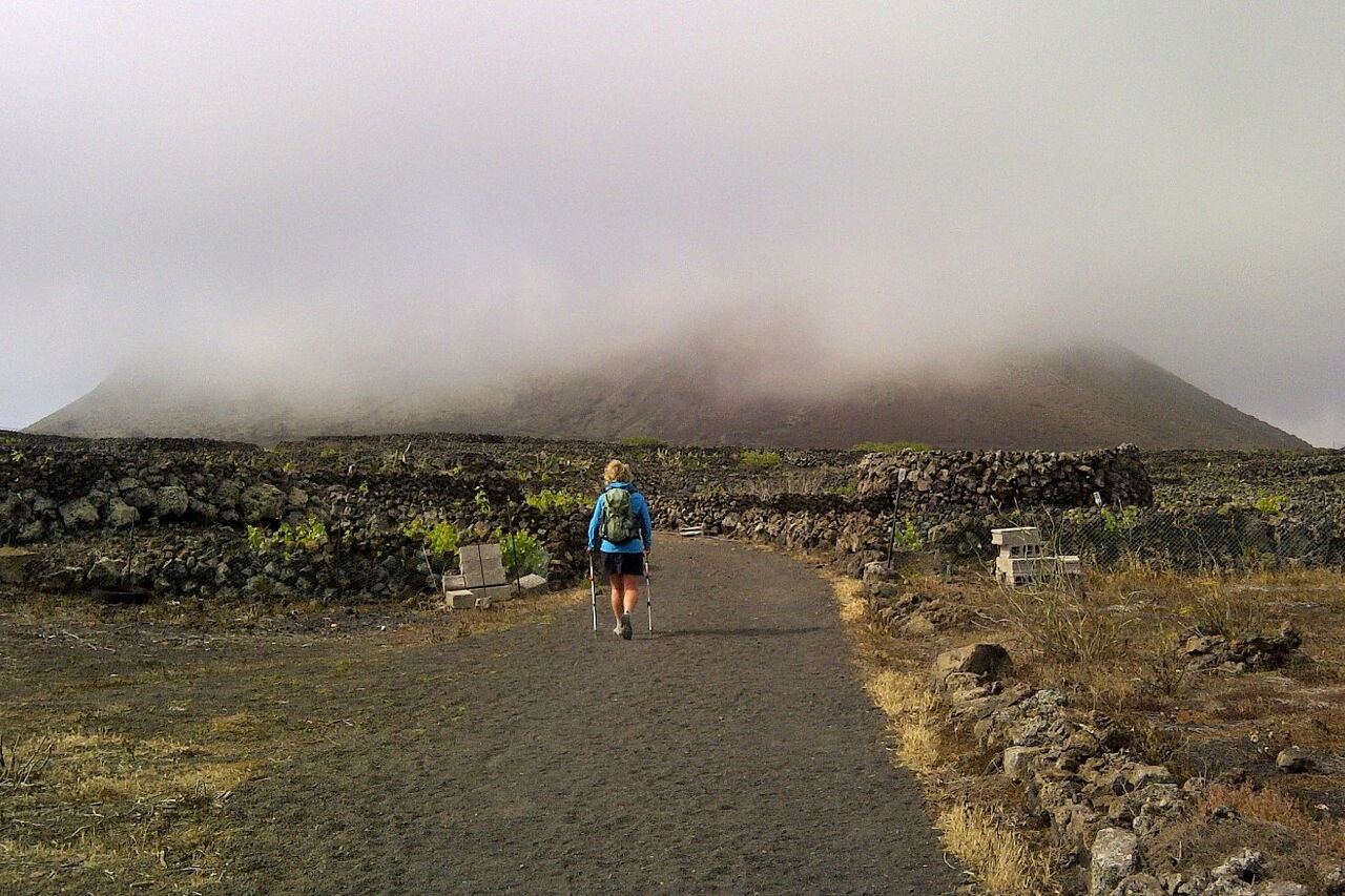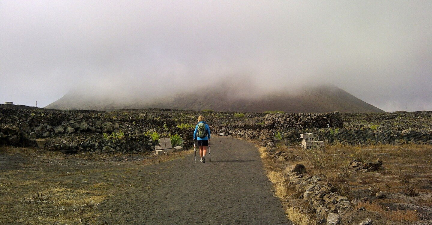 Über einen Wirtschaftsweg erreicht man schnell den untersten Kraterrand. Auf der folgenden Kraterrandumrundung gibt es immer wieder steile, steinige und rutschige Abschnitte. Die Orientierung ist jedoch immer eindeutig - selbst bei Nebel -, da es stets am Krater entlanggeht. Untergrund: 30% angelegter Weg aus Lavagranulat und 70% Lavasteine in verschiedenen Größen. Ausrüstungsempfehlung: Wanderstöcke für den steilen, rutschigen Auf- und Abstieg. Einkehr: Restaurant Volcan de la Corona in Yé. Die Strecke kann das ganze Jahr über begangen werden. In den Wintermonaten ist mit erhöhter Wolkenbildung zu rechnen. Mit dieser Wanderung lässt sich perfekt die Besichtigung einer der Top-Sehenswürdigkeiten auf Lanzarote kombinieren, des Mirador de Rio.