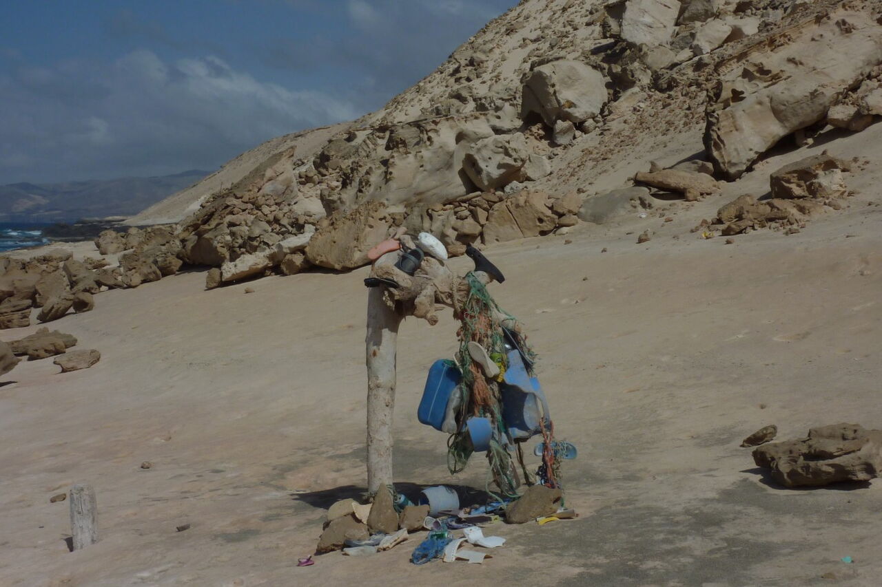 Mitunter kann hier auch kreativ gesammelter Müll betrachtet werden. Nach einiger Zeit kommen wir an die kleine, einsame Bucht. Je nach Wellengang und Stand der Gezeiten präsentiert sich ein sehr schöner Strandabschnitt, der zum Verweilen einlädt.