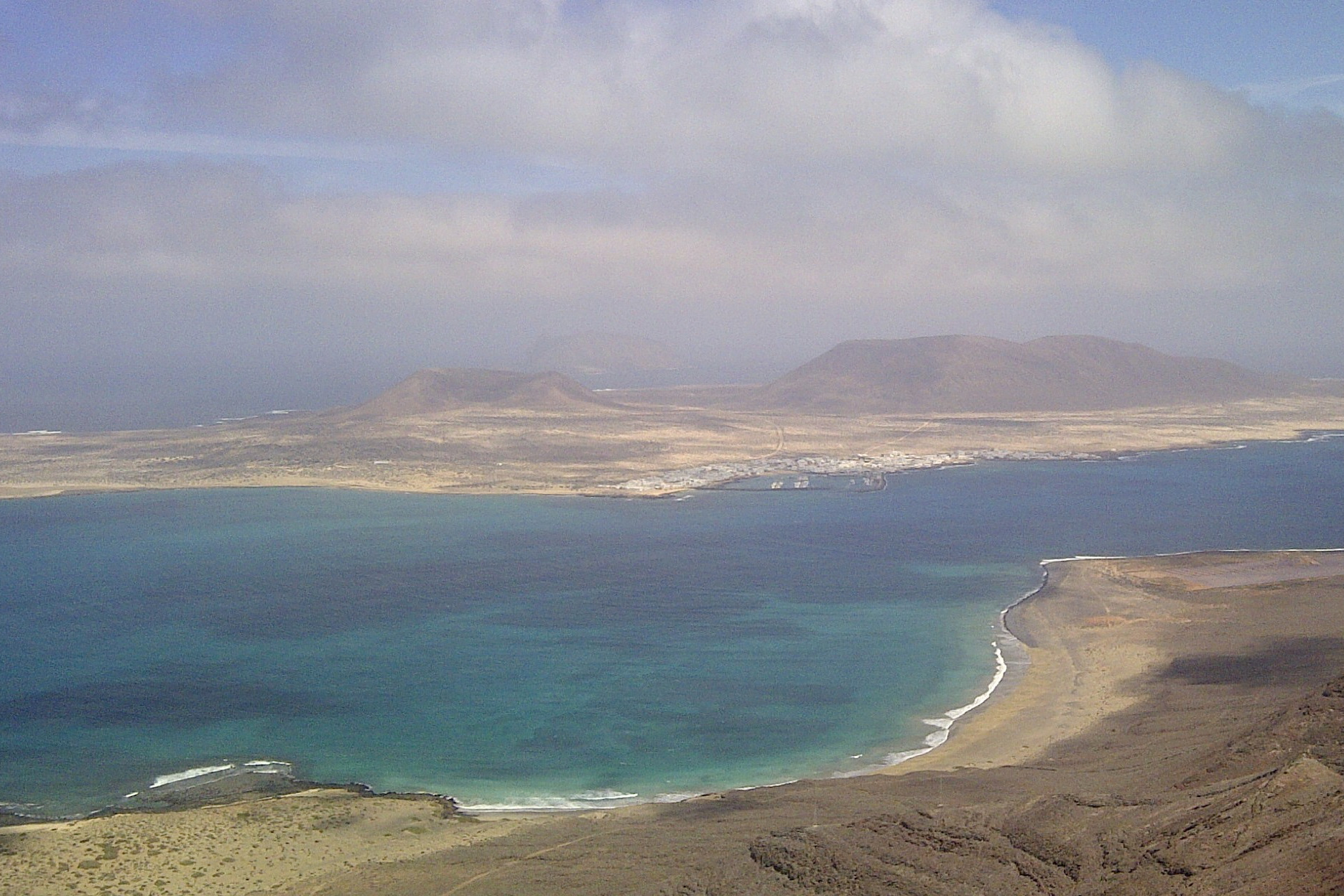 Vom 01 Parkplatz 359 m Las Rochitas gehen wir den gepflasterten Weg bis zum Klippenrand vor. Traumhafte Fernblicke über die Meeresenge El Rio sowie die Nachbarinsel La Graciosa - Teil des Chinijo-Archipel-Naturschutzgebiets - laden zum Verweilen ein. Rechts von uns, unterhalb der Klippen, sieht man verlassene Salinen. Weiter unterhalb liegt unser Ziel, der Playa del Risco. In steilen Kehren geht es im Zickzack bergab.