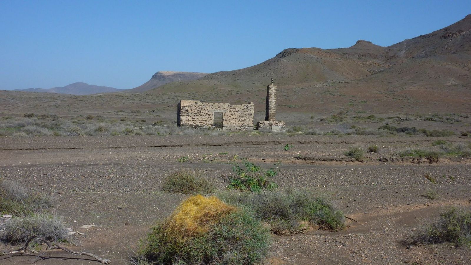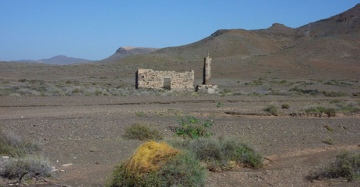 Busanbindung: keine. Pkw-Anfahrt: Von der Costa Calma 35 km auf der FV-2 in nördliche Richtung fahren. Im ersten großen Kreisverkehr bei Tequital die erste Ausfahrt und im folgenden kleinen Kreisverkehr die zweite Ausfahrt nehmen. Anschließend fahren wir ein kurzes Stück parallel zur FV-2, dann halb rechts auf der ortsauswärts führenden Asphaltstraße in östliche Richtung. Im weiteren Verlauf ignorieren wir alle Abzweiger nach rechts und links, bis wir bei einem letzten Haus, nun auf einer Schotterpiste, bergauf fahren. In der folgenden Senke gabelt sich der Weg. Hier parken wir das Auto im Gelände. Geokoordinaten Parkplatz: 28.274833 -13.963783.