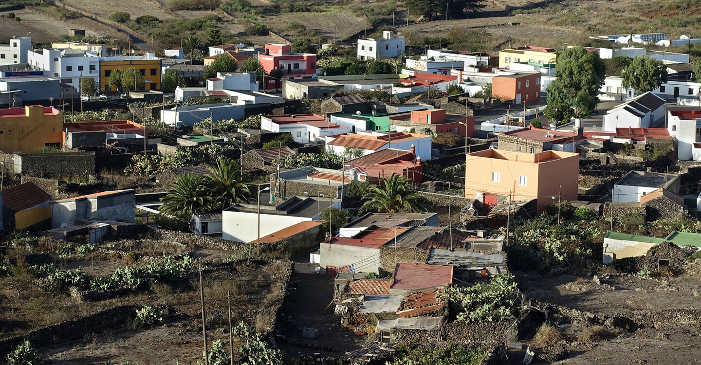 Vom (01) Start und Ziel (1041 m) an der Bushaltestelle und dem Casino gehen wir auf der von Platanen gesäumten Hauptstraße Richtung El Pinar. Direkt hinter dem gelben Briefkasten biegen wir rechts in die Stichstraße und kommen im weiteren Verlauf an der kleinen Dorfkirche vorbei. Am Ende der großen freien Fläche gehen wir am grünen Gebäude auf der Straße rechts, um dann bei der nächsten Möglichkeit halb rechts der Ausschilderung zum Arbol Garoe zu folgen.