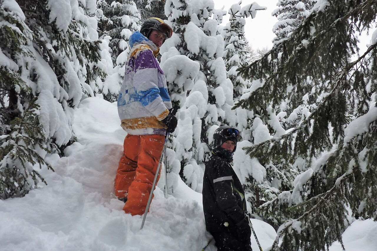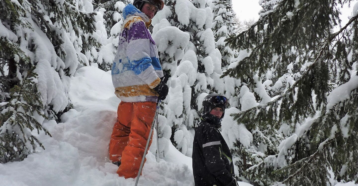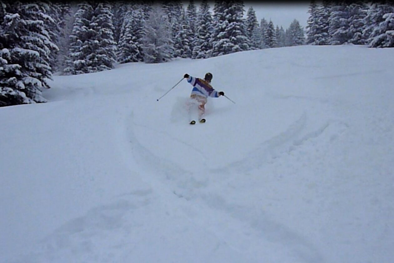 Nach 400 m erreichen wir eine freie Fläche mit einer sehr schönen Tiefschneeabfahrt bis auf die Piste 24, die nach La Villa führt.
