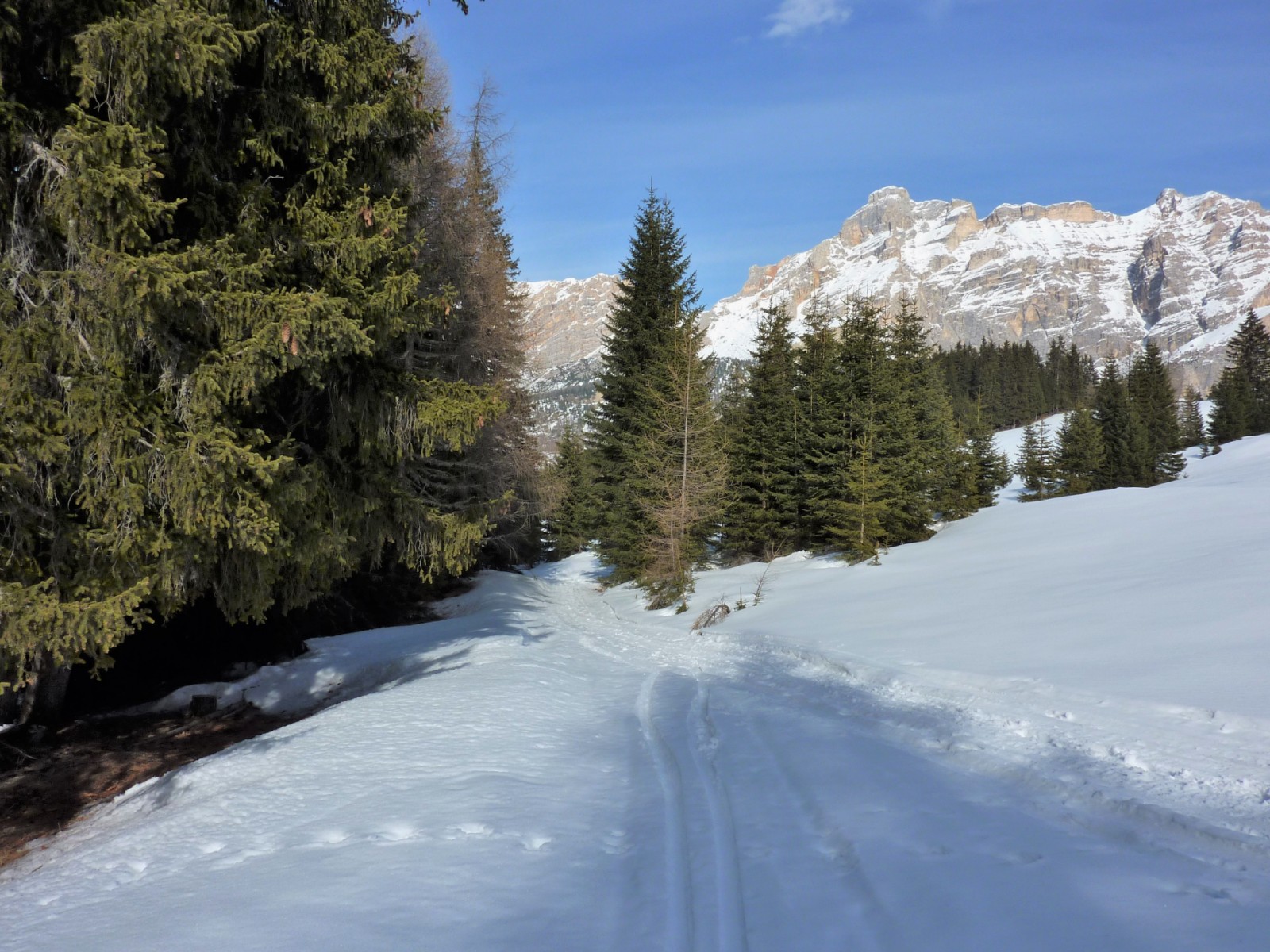 Hier kann man nach La Villa abfahren oder geht 200 m auf der Piste rechts bergauf, um dann links auf dem Wanderweg 2,5 km nach San Cassiano abzufahren. Bis zur Gondel Nr. 11 Piz Sorega kommt nun ein ca. 1 km langer Fußweg.