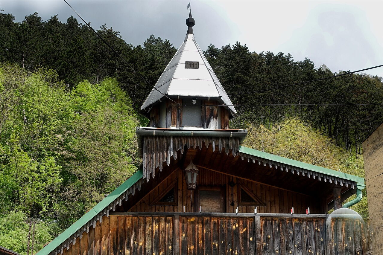 Von der großen und gelb angemalten Kirche – diese liegt an der Hauptstraße, die durch die Ortschaft 01 Slovenská Ľupča (376 m) führt – gehen wir in nordöstlicher Richtung auf dem Fußgängerweg, vorbei an dem Gedenkstein zum Ersten Weltkrieg. Bei dem darauffolgenden Fußgängerübergang gehen wir links und folgen der braunen Ausschilderung Richtung Slovenská Ľupča.