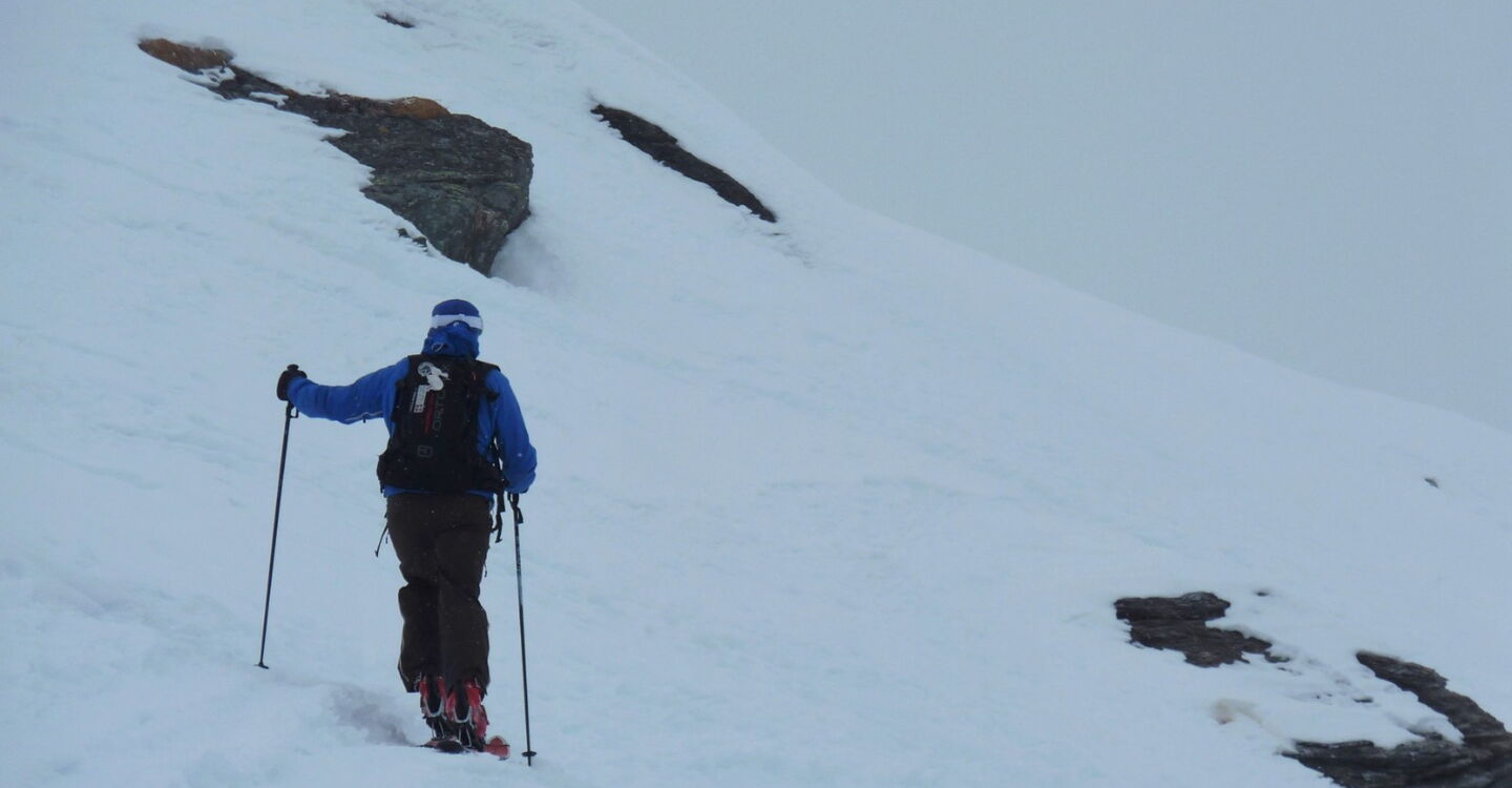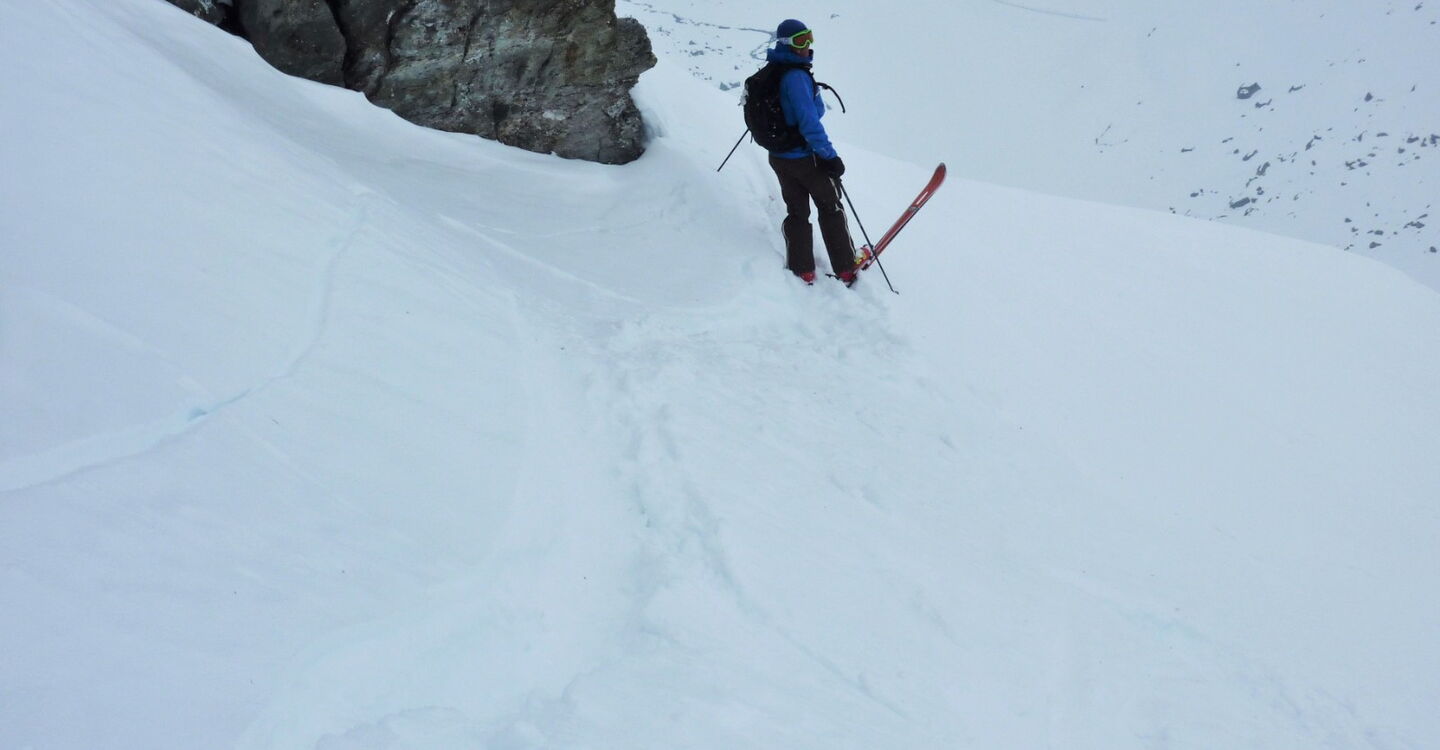 Einfache Abfahrt über den Gletscher. Bitte unbedingt die Absturzwarnung hinter dem Canyon beachten. Die Abfahrt führt über einen Westhang. Folgende Ausrüstung wird empfohlen: Produkte für alpine Sicherheit im Schnee, Tourenski und Skitourenhelm. Es gibt keine Einkehr auf der Tour. Außer man nimmt vor oder nach der Tour eine Stärkung in dem Rifugio Città di Vigevano. Beste Jahreszeit: Januar bis April. Uns erwarten kurze Stücke mit bis zu 30° Hangneigung.