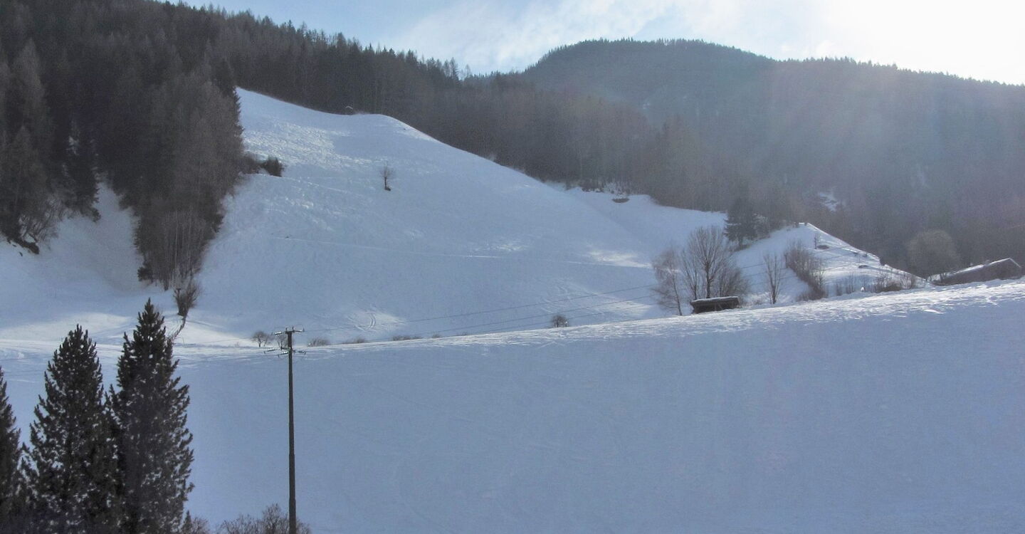 An der Bergstation des Sessellifts Hühnerspiel fellen wir auf, gehen links vom Lift Richtung Süden und steigen auf dem Grat, auf dem uns immer wieder lichte Waldstellen begegnen, ca. 200 hm auf den Bachberg.
