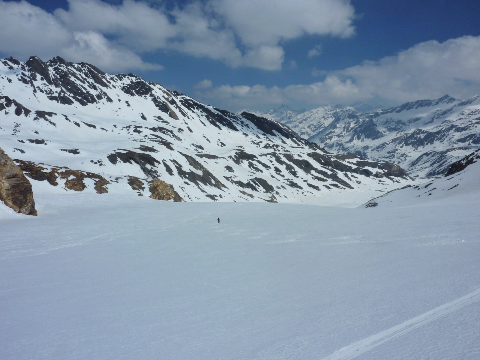 Je nach Schneeverhältnissen folgen 8 km Abfahrt. Wir konnten komplett zur Enzianhütte abfahren. Zurück geht es mit einem Abholer oder dem Taxi Voggler, Tel. mobil (0039) 335 6 00 68 65.