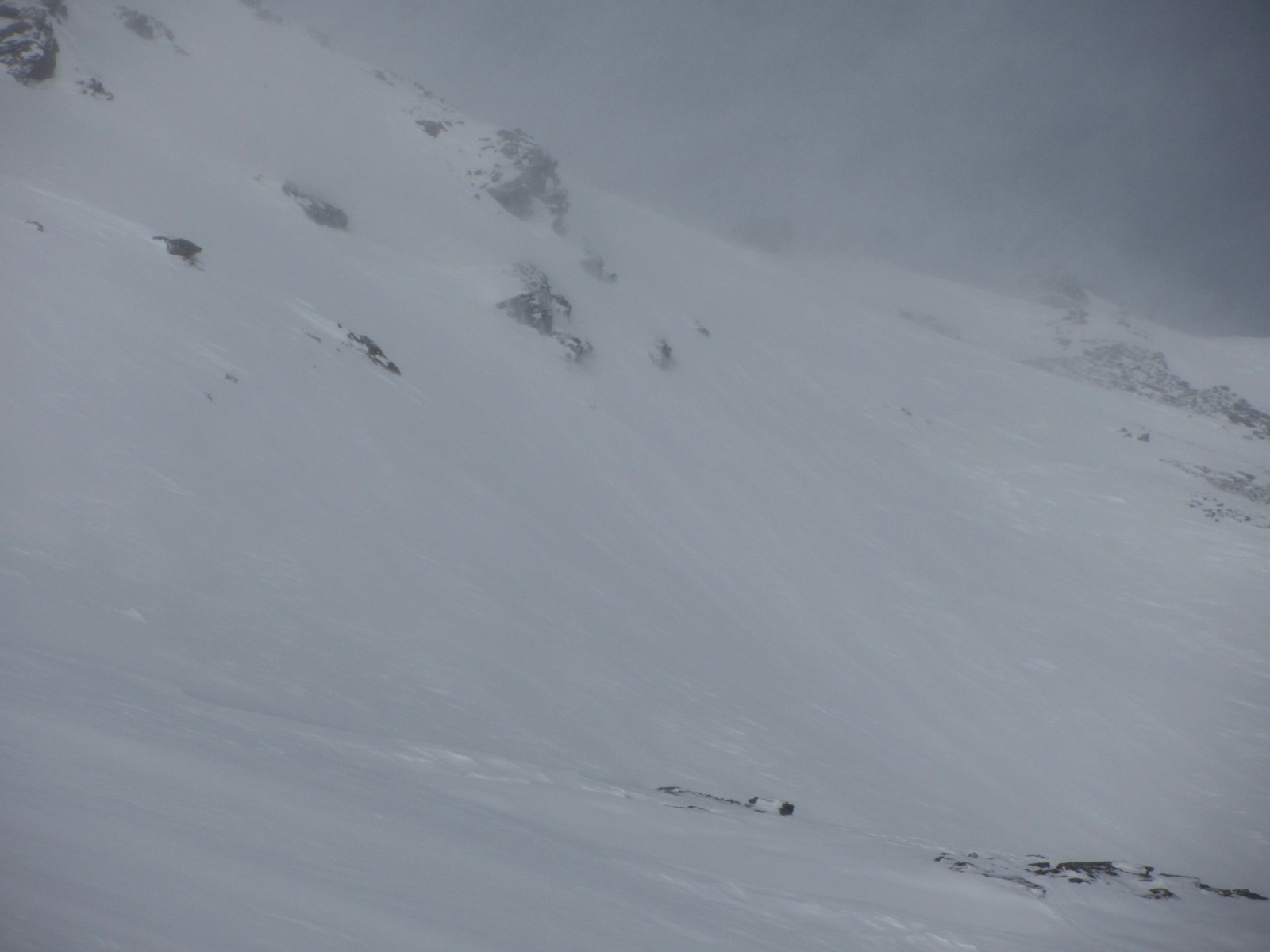 Plötzlich hatten wir einen Wolkendeckel ab 2.900 m und eine damit verbundene sehr schlechte Sicht. Die 60 cm Neuschnee vom Vortag wurden innerhalb kürzester Zeit irgendwohin verfrachtet.
