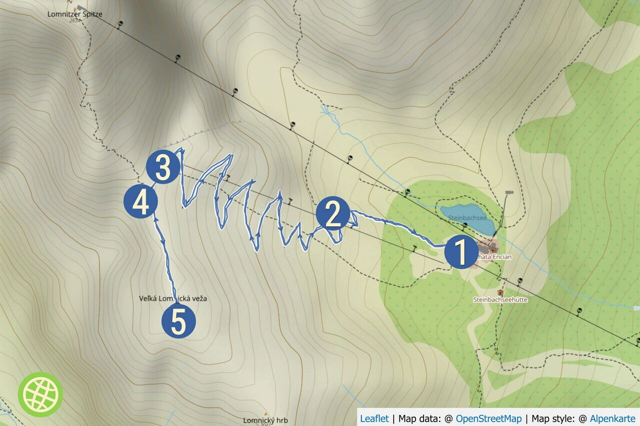 Eine Fahrt mit der Seilbahn auf den zweithöchsten Gipfel der Slowakei, den Lomnický štít, gehört zu den klassischen Ausflügen in der Hohen Tatra. Die Seilbahn überwindet dabei beachtliche 1700 Höhenmeter. Wir sind aber zum Wandern gekommen und besteigen einen der einfachsten Zweitausender in der Hohen Tatra am Fuße der überaus beeindruckenden und steil aufragenden Felswand des Lomnický štít. Von einem Aussichtspunkt genießen wir dann einen faszinierenden Bergblick und Richtung Süden können wir über das Vorland der Hohen Tatra bis hin zu den Gipfeln der Niederen Tatra blicken. Die Tour ist eines der aussichtsreichsten Abenteuer aus diesem Wanderführer.