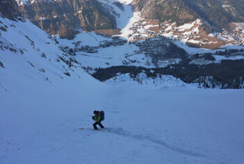 Großartige Variante durch ein verlassenes Tal mit Tiefschneegarantie.