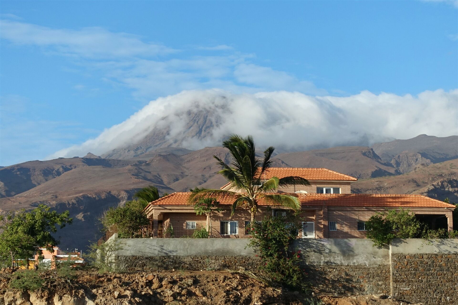Kapverden - Insel São Nicolau - Tarrafal und im Hintergrund der in Wolken gehüllte Monte Gordo