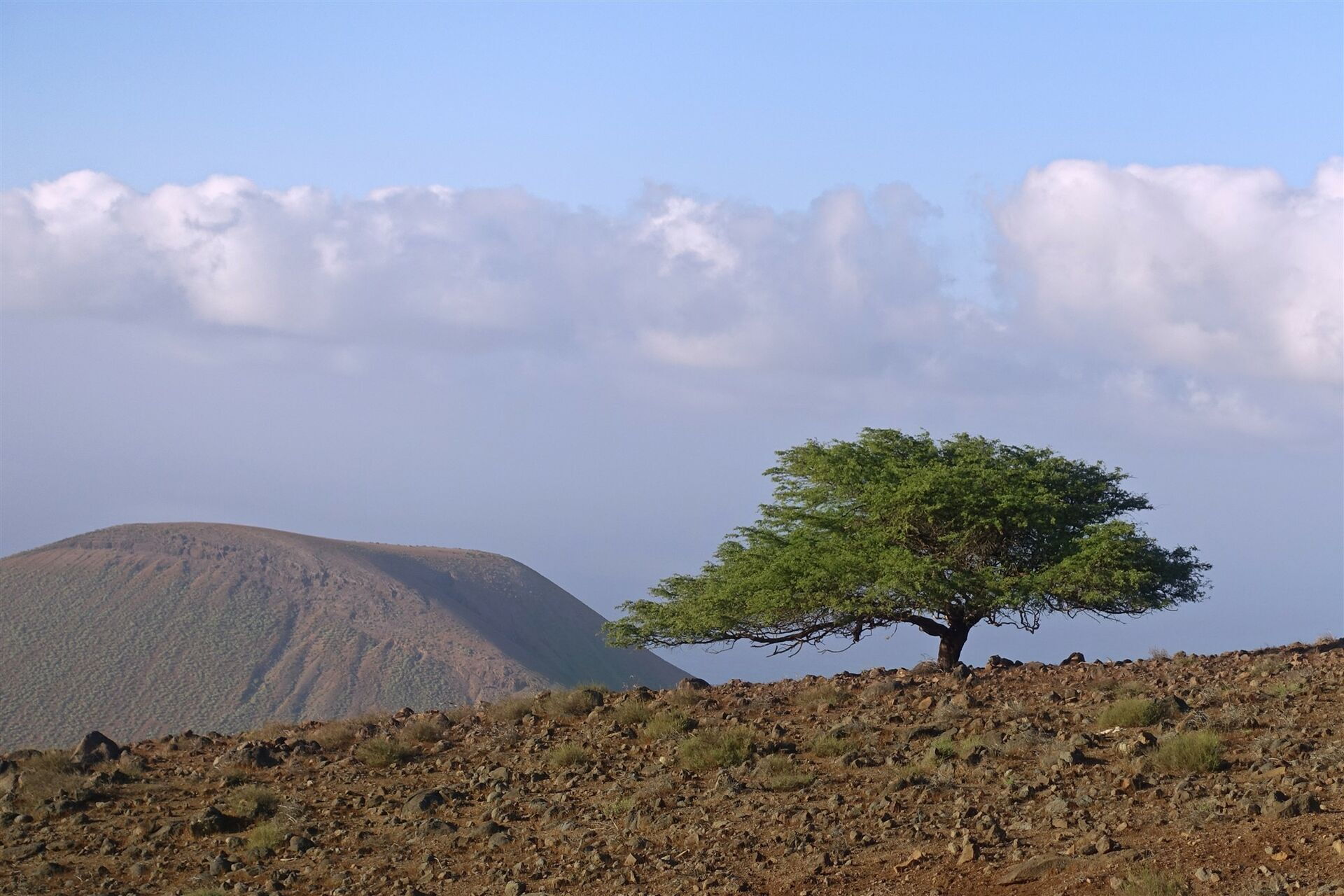 Kapverden - Insel São Nicolau - eine alleinstehende Akazie auf einer Hochebene