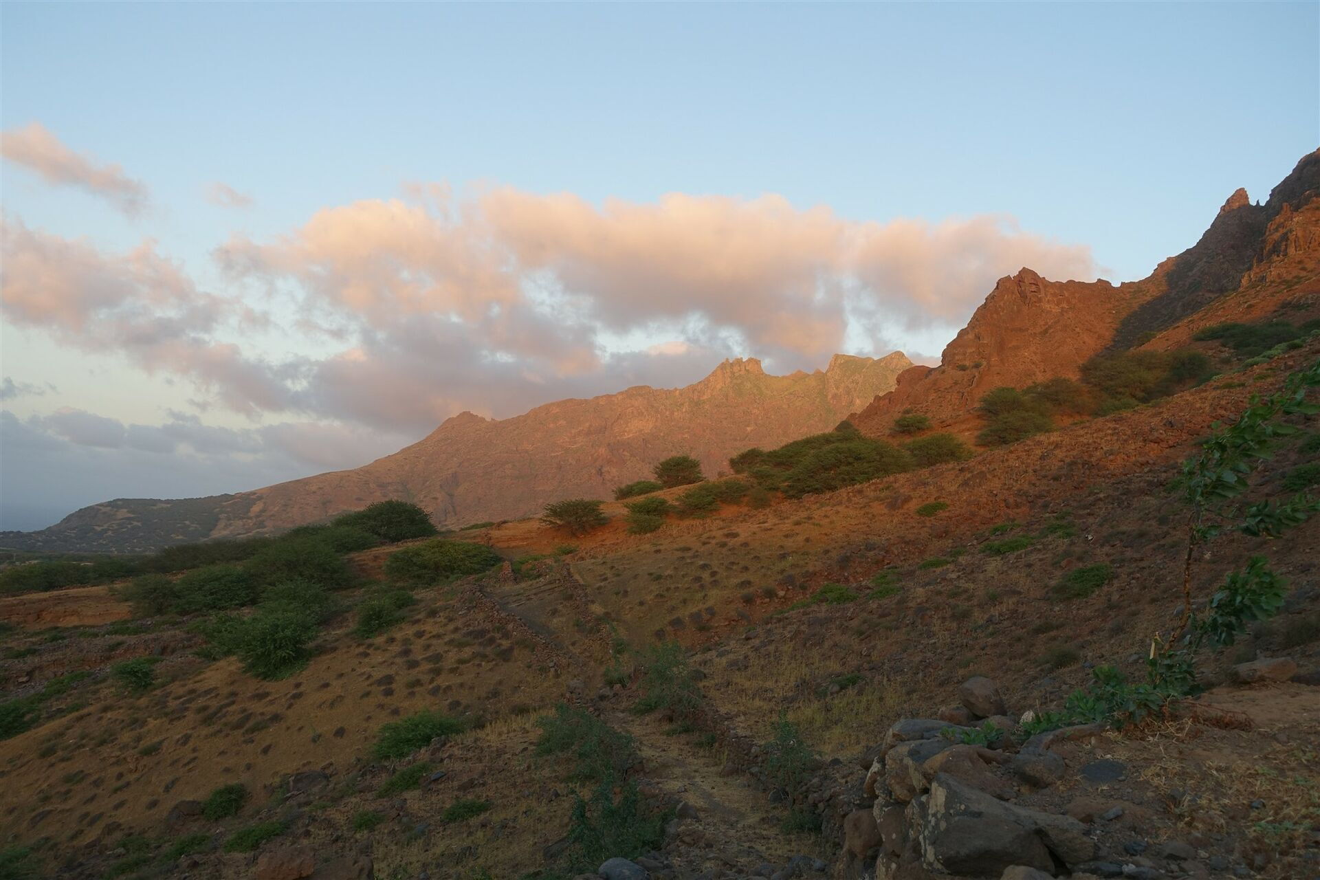 Kapverden - Insel São Nicolau - der Caminho durch den Steilhang bei Sonnenuntergang