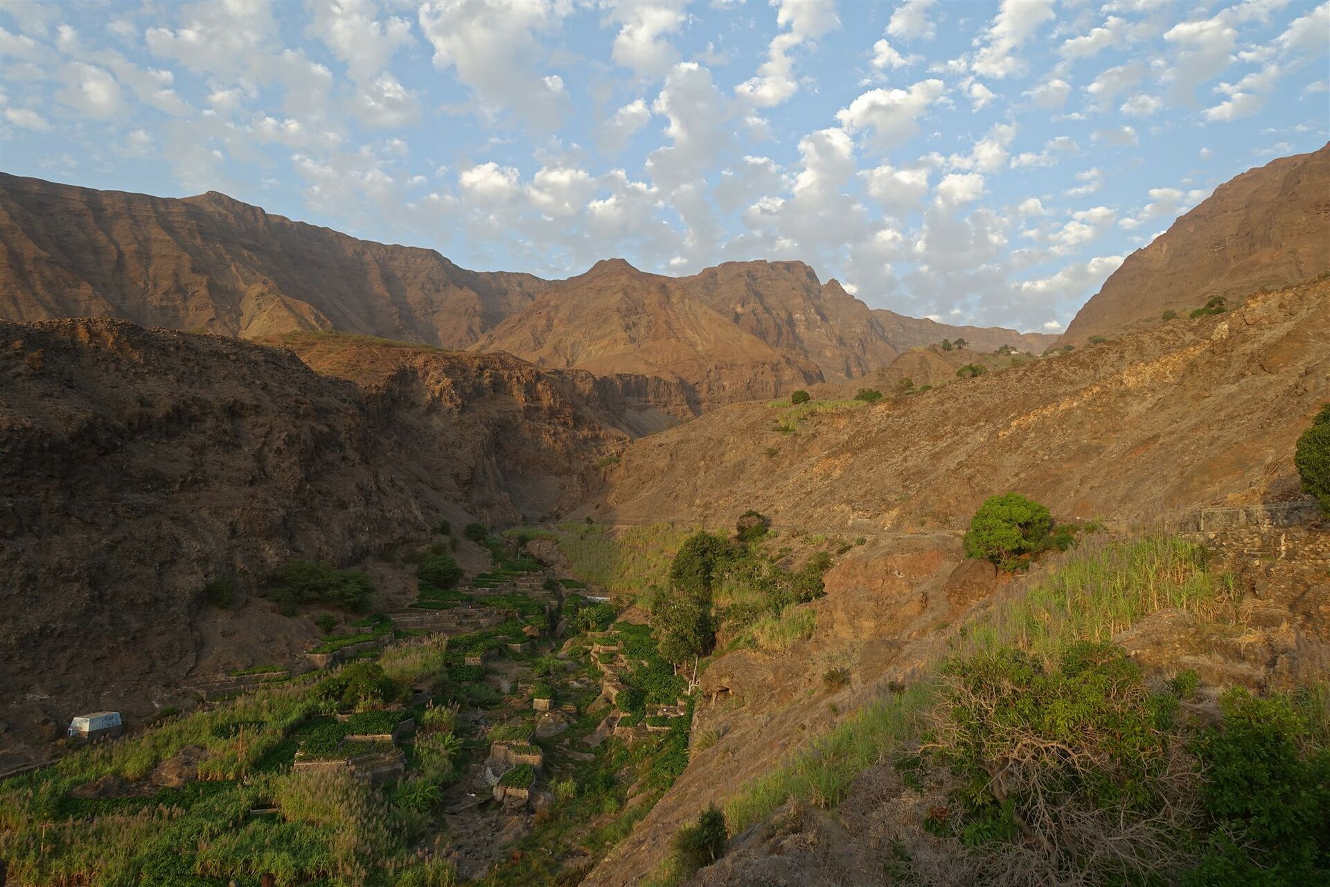 Kapverden - Insel Santo Antão - vom Ortsteil Covoc blickt man tief in die Schlucht des Ribeira do Tarrafal