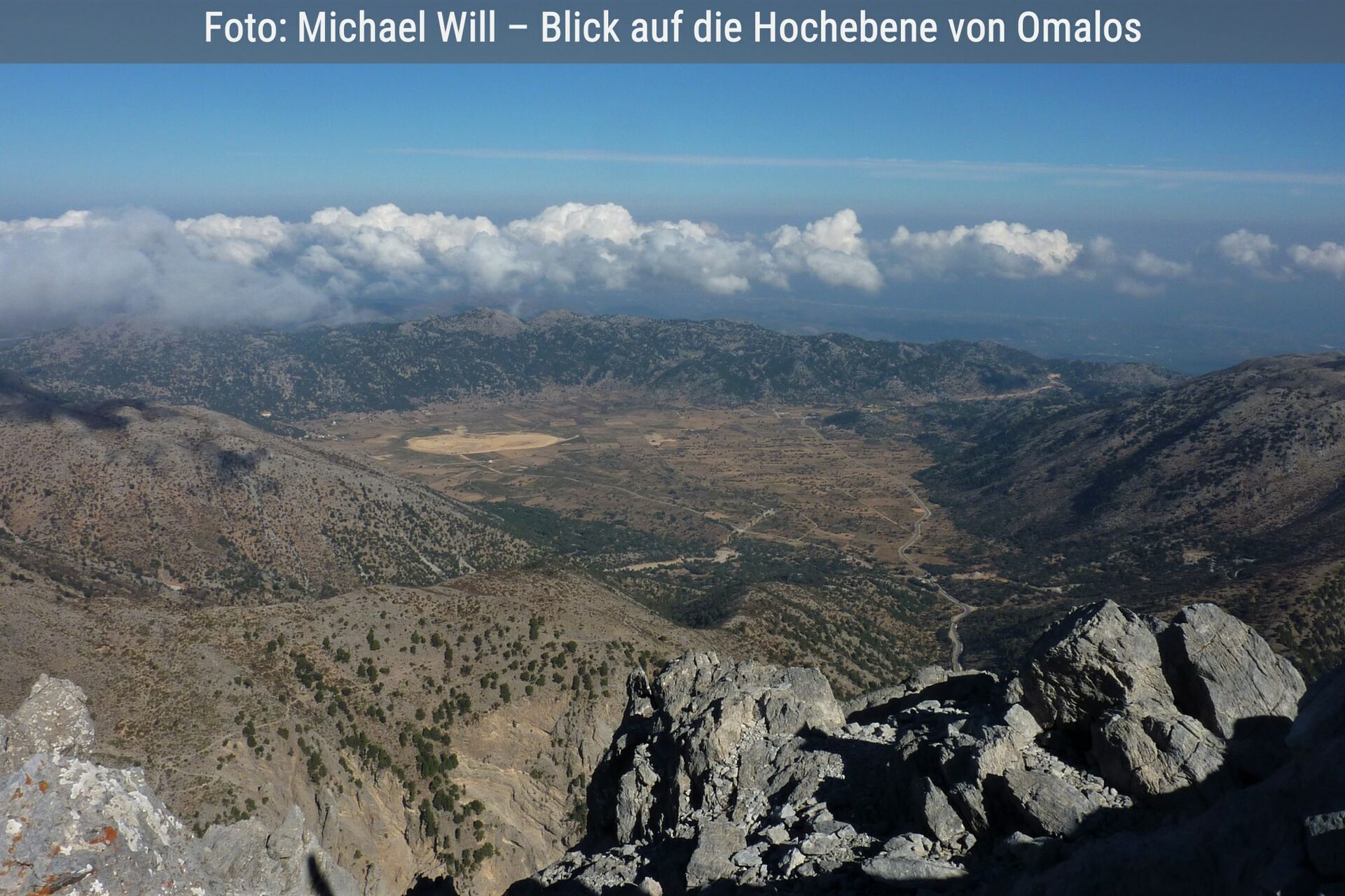 Die anspruchsvollste Tour dieses Wanderführers fordert alles von uns: Dauer ca. 9 Stunden, Strecke ca. 20 km und ca. 1300 Höhenmeter bergauf. Besonders beeindruckend ist am Wegpunkt 03 ein Talboden mit einer Quelle, gelegen zwischen riesigen Plantagen und auf einer Hochebene mit Europas größten Kermes-Eichenwald, der sogenannte Rouvas-Wald. Ein weiteres Naturschauspiel ist dann die Nida-Hochebene. Die Anspannung aufgrund der Wegfindung und der Einteilung unserer Kondition fällt von uns ab und wir nehmen Geräusche, Bilder und Gerüche bewusst war. Auf dieser Tour kommen wir wahrhaft im Jetzt und Hier an. Die Belohnung alle Mühen sind die atemberaubende Berglandschaft und ein erhabenes Glücksgefühl, das Etappenziel geschafft zu haben. | Siehe Wanderung 13 |