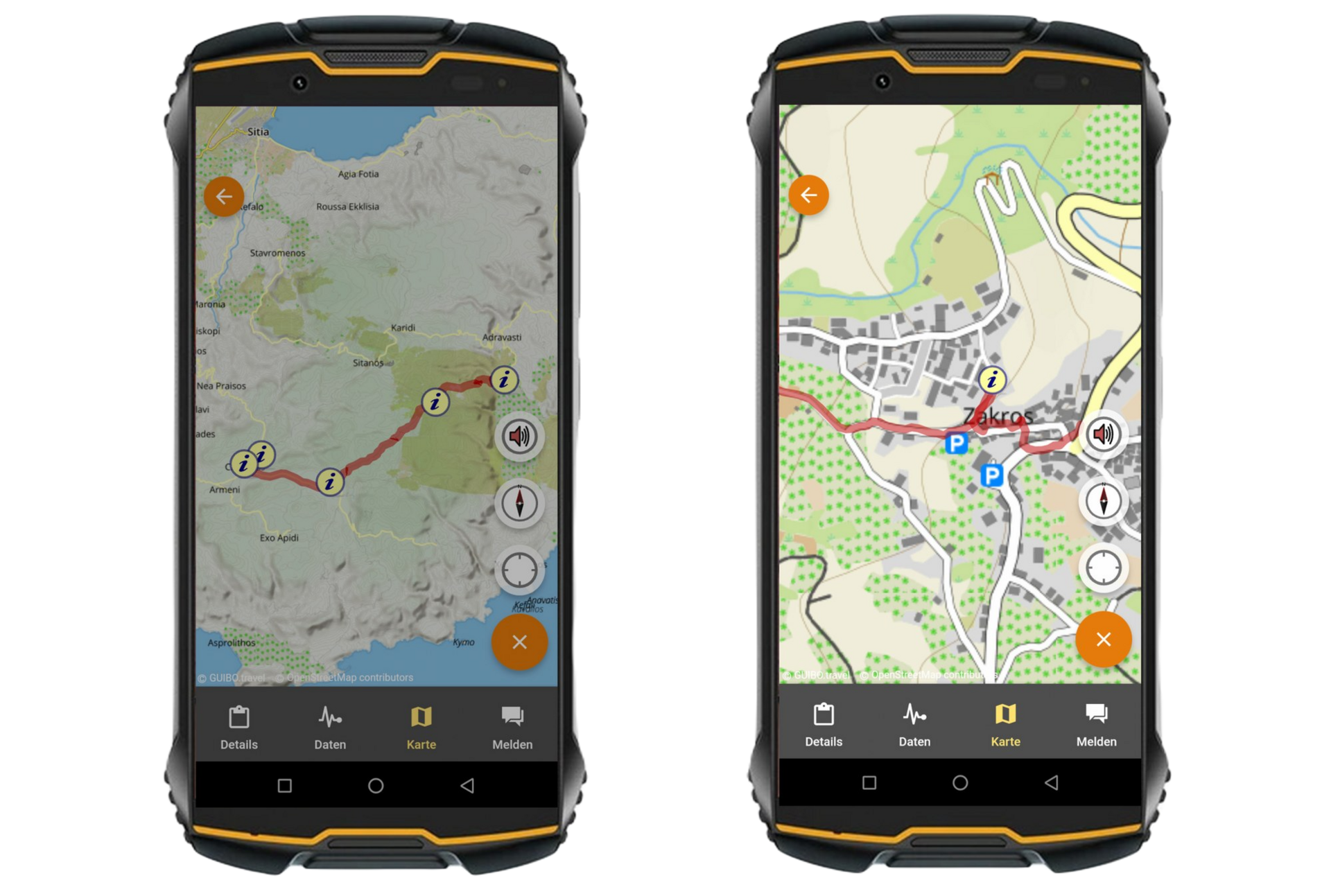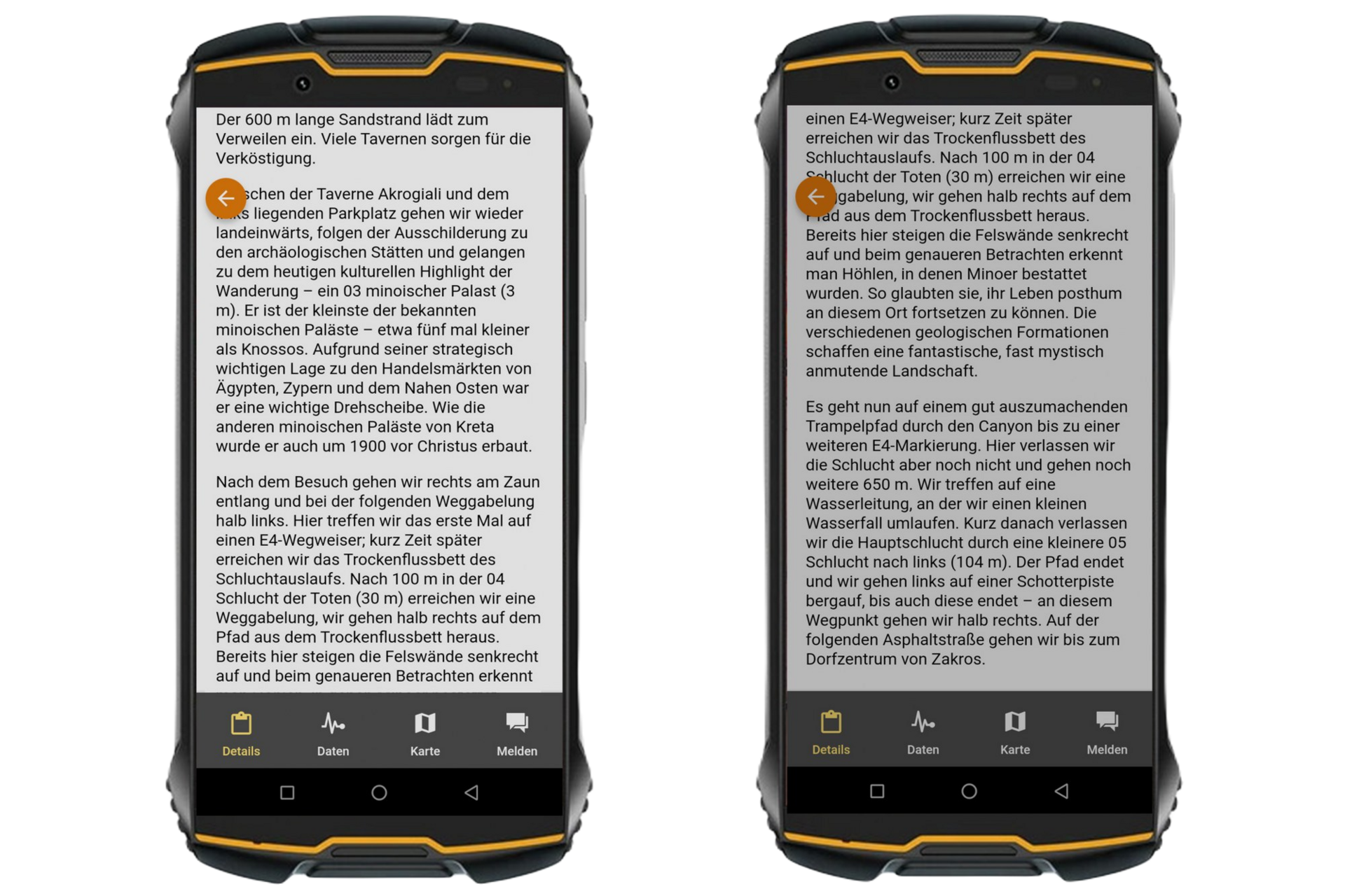 - Zusätzliche redaktionelle aufbereitete Wegbeschreibungen wie in einem klassischen Print-Wanderführer.