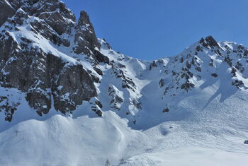 Kurze, aber knackige Abfahrt, die noch bis zum Ende der Saison gute Schneebedingungen aufweist.