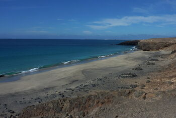 Nach einem kurzen Abstieg durch ein Barranco erreicht man den Strand, der zum Baden einlädt.