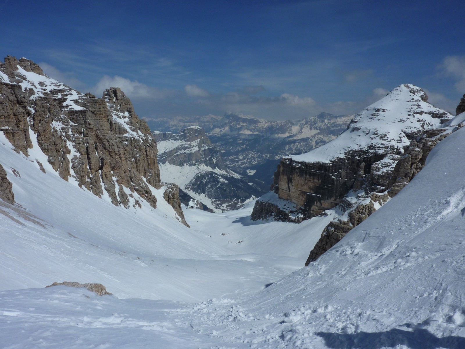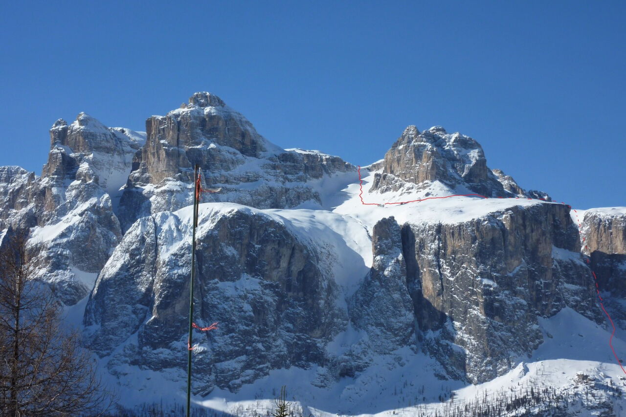 Wenn noch keine Spur vorhanden ist, ist die Orientierung nicht einfach, aber mithilfe des GPS-Tracks gut machbar. Die Abfahrt führt über einen Nordhang. Folgende Ausrüstung wird empfohlen: Produkte für alpine Sicherheit im Schnee, Tourenski und Skitourenhelm. Es empfiehlt sich die Einkehr in das Rifugio Maria bei der Bergstation, welches nach Maria Piaz, der Pionierin des Tourismus am Pordoipass, benannt wurde. Beste Jahreszeit: Januar bis April. Uns erwarten kurze Stücke mit bis zu 50° Hangneigung.