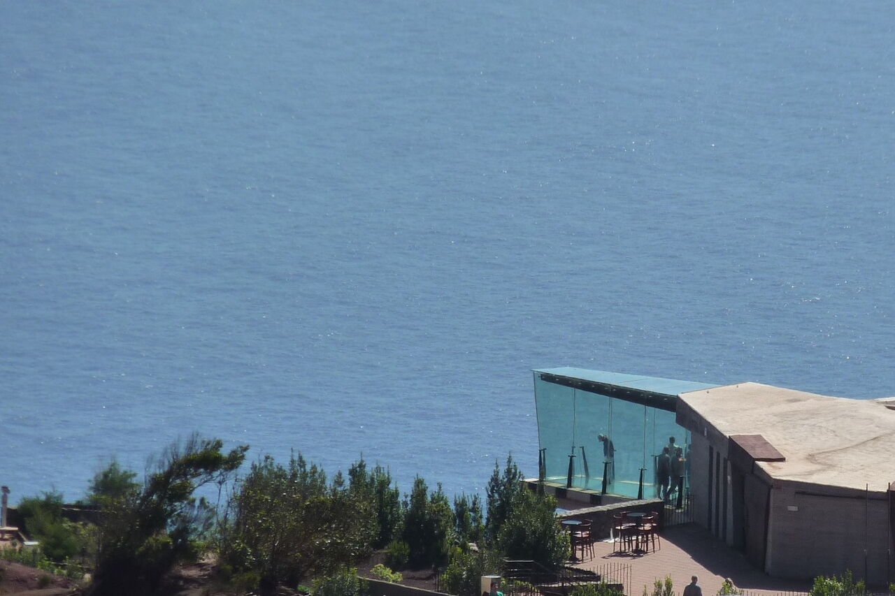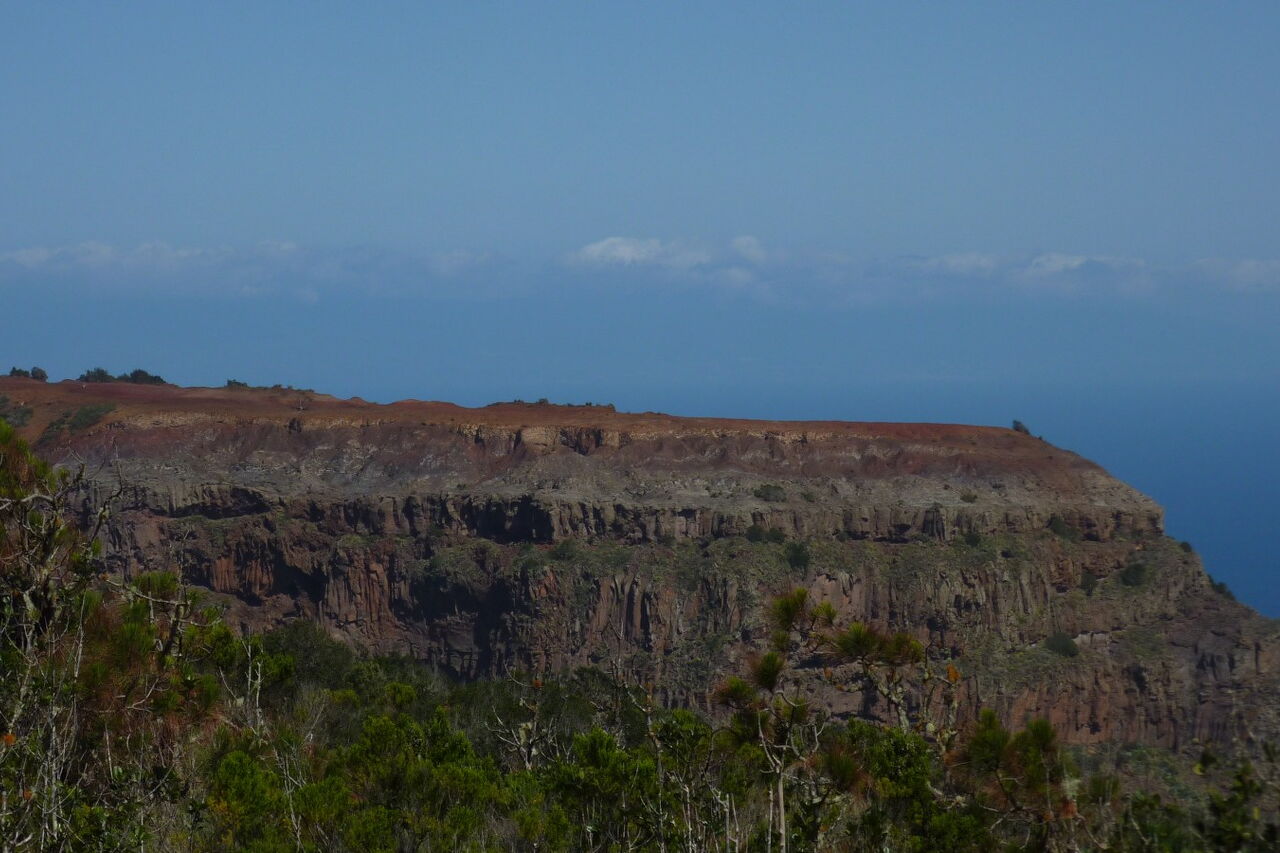 Zunächst gehen wir auf dem gleichen Weg zurück, dann aber nicht an dem Abzweiger links bergab - unser Hinweg -, sondern geradeaus. Das folgende Wegstück ist ständiger Erosion ausgesetzt und daher teilweise schwer auszumachen. Wir halten uns weiter rechts und sehen bald unterhalb von uns den nächsten Wegpunkt, den (04) Skywalk (638 m). Aus 600 m Höhe über dem Meeresspiegel ergeben sich atemberaubende Fernblicke über die gesamte Nordküste. Zu unseren Füßen liegt das Dorf Agulo, der Ausgangspunkt unserer Wanderung. Bei Fernsicht lässt sich die Nachbarinsel Teneriffa mit dem 3718 m hohen Teide erspähen.