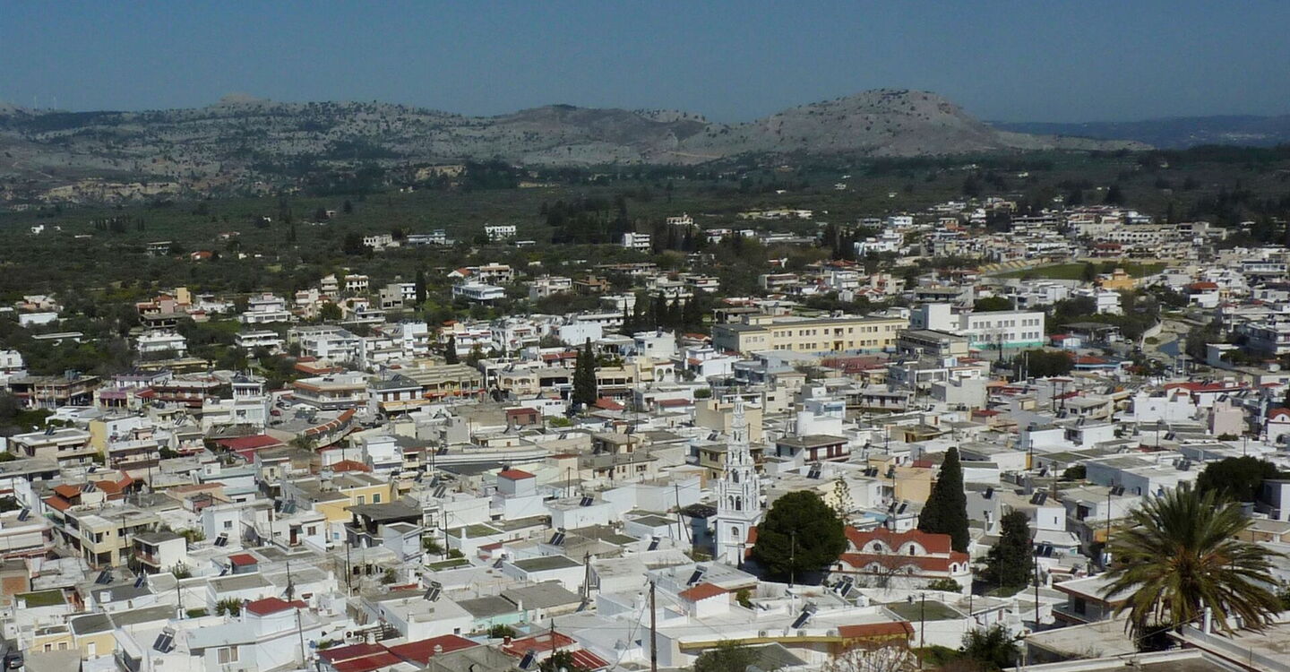 Die Wanderung startet in Archangelos, immerhin das größte Dorf der Insel und benannt nach dem Erzengel Michael, Schutzpatron des Ortes. Durch die unendlichen Weiten der Olivenhaine erreichen wir einen kleinen Stausee, von dessen Staumauer das Wasser durch Wasserleitungen nach Kolymbia geleitet wird. Die Staumauer stammt aus der Zeit der italienischen Besetzung. Dann wartet eine Mutprobe auf uns: Wer möchte, kann durch einen engen, Wasser führenden Tunnel gehen, bis wir die Epta Piges, was "Sieben Quellen" heißt, erreichen. Wie von Geisterhand ergießt sich kristallklares Quellwasser zutage und sammelt sich zu einem Bächlein. Ein Tunnel tut sich auf und schluckt das Wasser wieder. Nach einem Abstecher zu einem Wasserfall geht es auf Bewirtschaftungswegen zurück.