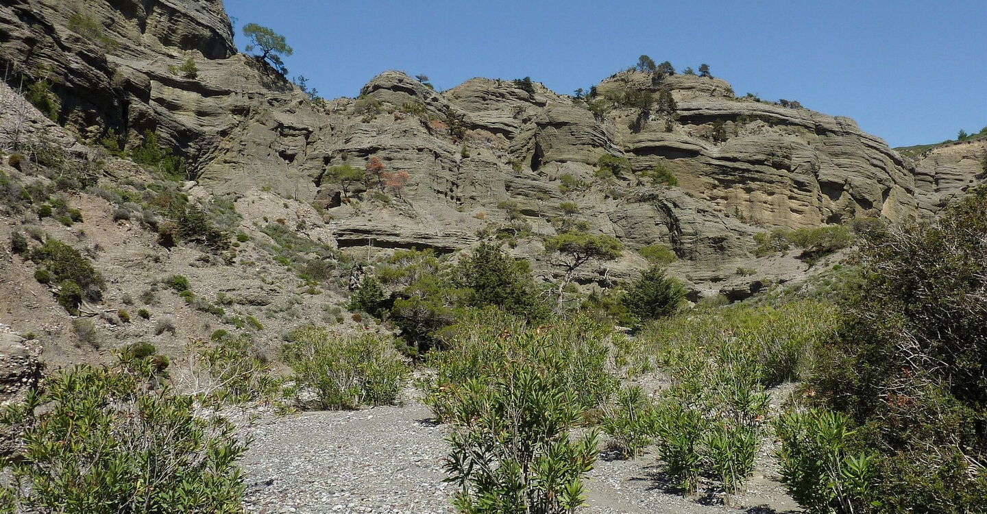 Malerisch zwischen den Hügeln versteckt liegt das kleine Dorf Arnitha. Am Dorfeingang befindet sich eine natürliche Quelle, ein erfrischendes Willkommen für alle Besucher. Kontinuierlich erfolgt der Aufstieg auf einem Bergrücken und final bis zum Gipfel des Troulos. Es ergeben sich andauernde tolle Aussichten auf die Umgebung zwischen der Ost- und Westküste der Insel. Nach einem steilen Abstieg erreichen wir eine alte Straße mit einer alten Brücke – die Verbindungsstraße von Arnitha nach Messanagros. Gebaut wurde sie von den Italienern während der Besatzung von 1912-1943. Eine Wanderung mit spannenden Erlebnissen in ursprünglicher Wildnis.
