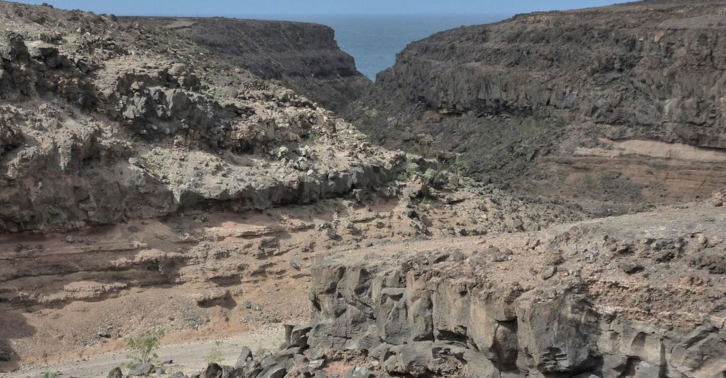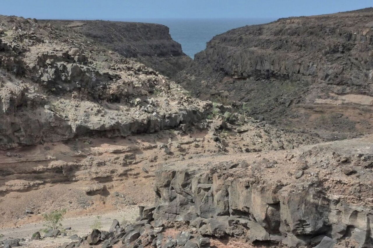 Ein besonderes Hauptmerkmal der Landschaft von Fuerteventura sind die Barrancos, tief eingeschnittene Schluchten, die die Landschaft durchfurchen. Sie entstanden in einem Millionen Jahre andauernden, ungeheuren Kampf gegen die Lavamassen, die hartnäckig darauf bestanden, die erosionsbedingt entstandenen Einschnitte wieder auffüllen zu wollen. Schließlich siegte die Erosion. Die heutige Landschaft ist das Resultat ihres zersetzenden und sich ständig wiederholenden Werkes. Im Zentrum der Insel nimmt das Spiel der Kräfte seinen Lauf. Wir treffen hier auf kleine Trockenflussbetten, die sich auf dem Wege zur Küste sammeln und zu mächtigen Schluchtausläufen werden. Im weiteren Verlauf werden sie immer enger und steiler, wodurch sich geradförmige Bergrücken bilden. Im Mündungsbereich weisen die Barrancos dann wieder flachere Konturen auf. Diese Barrancos haben auf Fuerteventura das Leben gestaltet, da durch sie das begehrte Wasser fließt, welches die Quellen speist. Die Bachbetten sind mit Tamarisken- und Palmenhainen bewachsen. In der Trockenzeit sind diese Schluchtausläufe wunderbare Wanderwege durch die vielleicht einzigen grünen Adern der Insel. Das wohl spektakulärste Barranco auf der Insel ist das Ziel unserer heutigen Wanderung – das Barranco Esquinzo; nicht zu verwechseln mit dem Barranco Esquinzo bei Morro Jable im Süden der Insel.