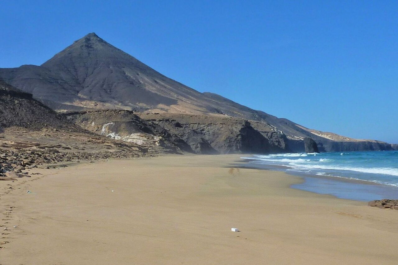 Ohne Frage, die Anfahrt mit dem Pkw hat es in sich. Aber die Belohnung folgt zugleich, ein Strandtag in der absoluten Einsamkeit der Westküste der Jandia-Halbinsel. Über 1,5 km Länge erstreckt sich der feine, hellbraune Sandstrand unterhalb der imposanten, bis zu 800 m hoch aufragenden Felsformationen – den höchsten Erhebungen der Insel. An 80 % aller Tage bläst der Passatwind und befördert die milde Seeluft in die Atemwege. Ein weiteres besonderes Naturschauspiel sind die 36 m hohe, erstarrte Felssäule des Roque de Moro, die vielen Sandsteinobjekte und die Intarsien auf den Felsen. Eine Entdeckungsreise für die ganze Familie.
