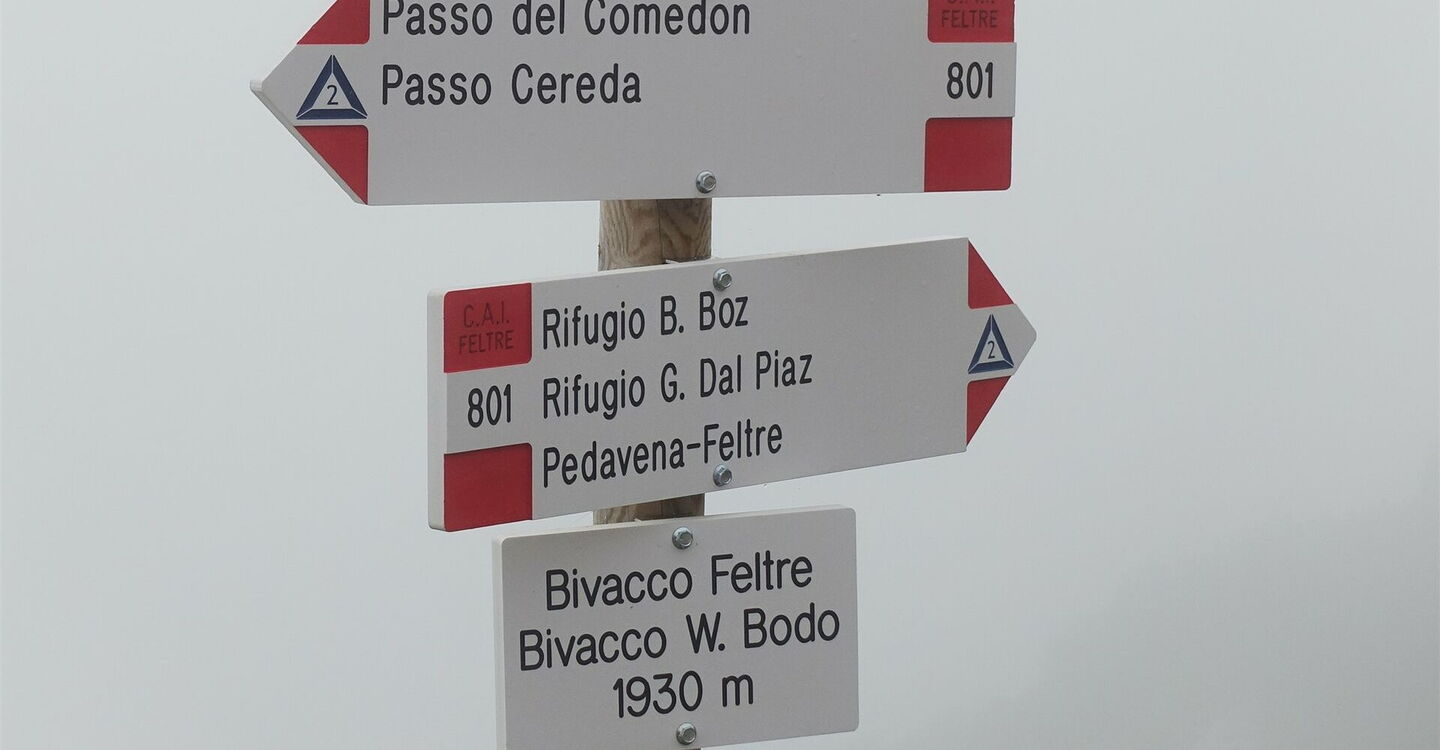 Startpunkt: Das Bivacco Feltre ist nur zu Fuß erreichbar und befindet sich am Ende der Wanderung 46. Endpunkt: das Rifugio Bruno Boz am Anfang der Wanderung 48.